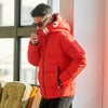 前立て部分にはロゴテープ、フードにプリントを施した個性的なデザインです。
