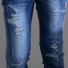 絶妙なダメージ&リペア加工を盛り込んだデニムパンツ。