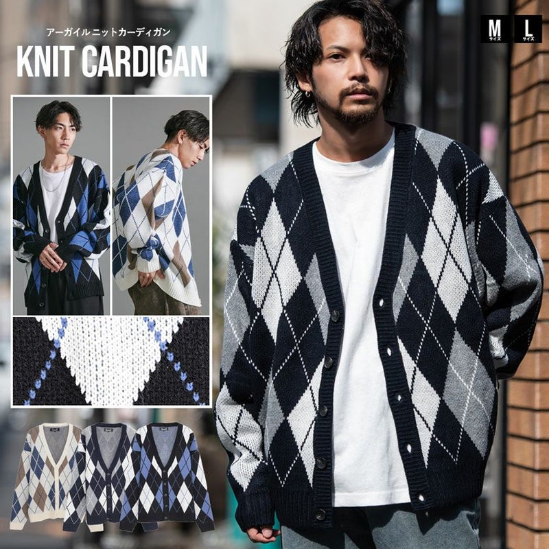 カーディガン メンズ オーバーサイズ アーガイル 総柄 格子柄 大人 大きいサイズ ニット 暖かい シンプル アウター カジュアル ファッション おしゃれ 春 夏 秋 冬 ストリート ストリート系 ストリートファッション 韓国 韓国系 韓国ファッション 下北沢 下北系 古着 古着系 ベージュ ブラック 黒 秋 冬 CavariA キャバリア 男性 男 父の日 父の日ギフト 父の日プレゼント 20代 30代 40代 メンズファッション 東京 プレゼント 誕生日 記念日 贈り物 ギフト