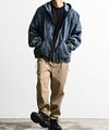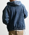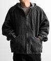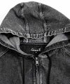 ヴィンテージ感のあるウォッシュ加工を施したデニム生地を使用した、フード付きジップパーカー。