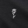 左胸に薔薇のワンポイント刺繍をデザインしたスタンドハーフジップのトレーナー。