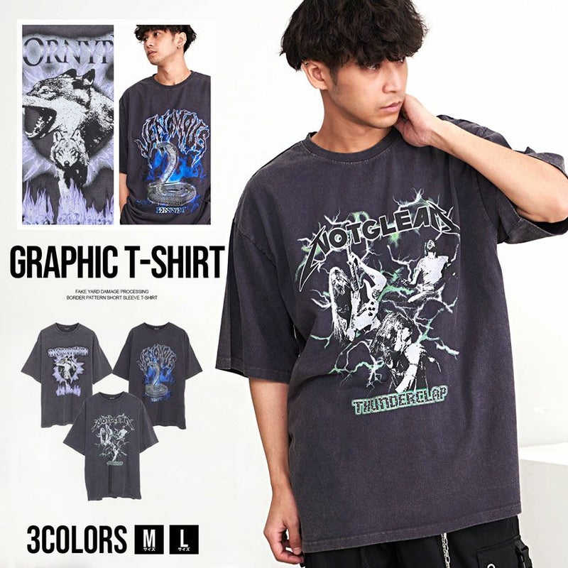 フロントに個性的なグラフィック3柄をほどこしたインパクト抜群なデザインの半袖Tシャツ。