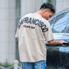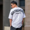 バックに肩にかけたアーチロゴを3Dに浮き出た発砲プリントで施したインパクト抜群の半袖Tシャツ。