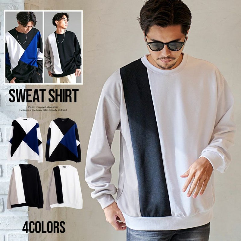 トレーナー メンズ スウェット スエット おしゃれ ポンチ 配色 切り替え ブラック ホワイト 黒 白 M L CavariA キャバリア ブランド 秋 冬 春 カジュアル ストリート ストリート系 ユニセックス 男性 男 父の日 父の日ギフト 父の日プレゼント 20代 30代 40代 メンズファッション 東京 プレゼント 誕生日 記念日 贈り物 ギフト