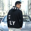 さり気ない光沢感のあるロゴをフロントとバック、フードにプリントしたプルオーバーパーカー。
