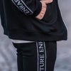 柔らかなポンチ素材を使用したサイドロゴパンツ。