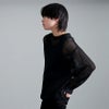メッシュの編み立てで透け感を表現したトレンドデザインのニットトップス。
