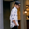 トレンド感あふれる総柄デザインが目を惹く、半袖シャツ。