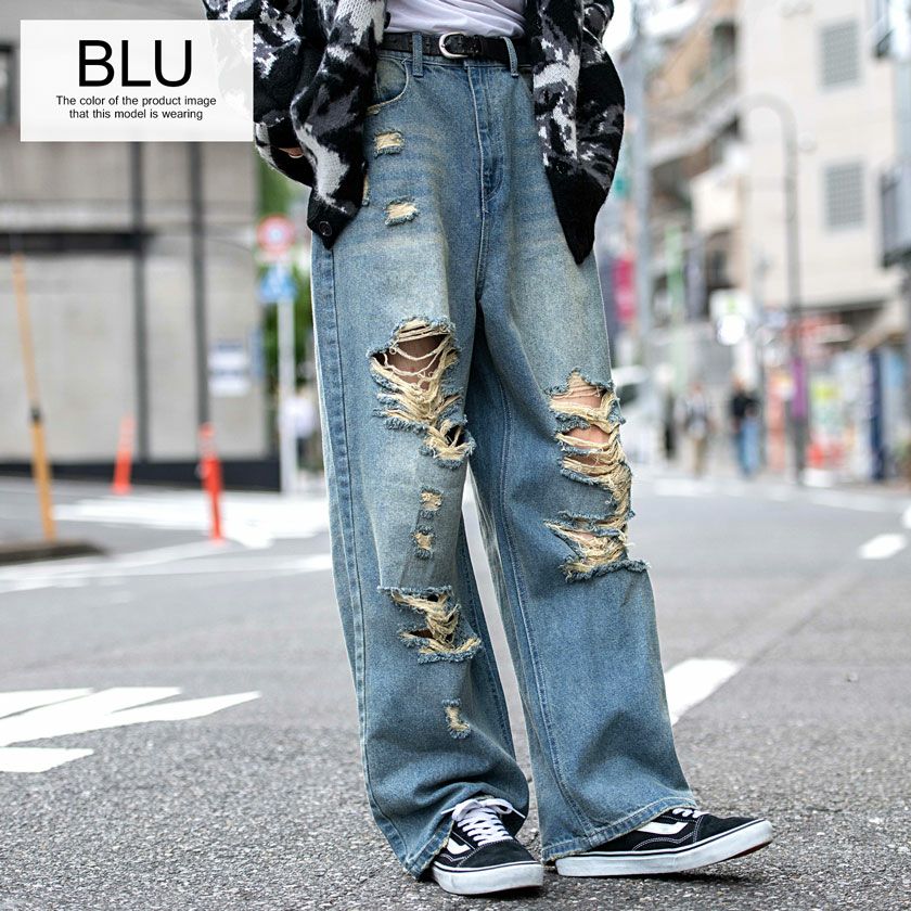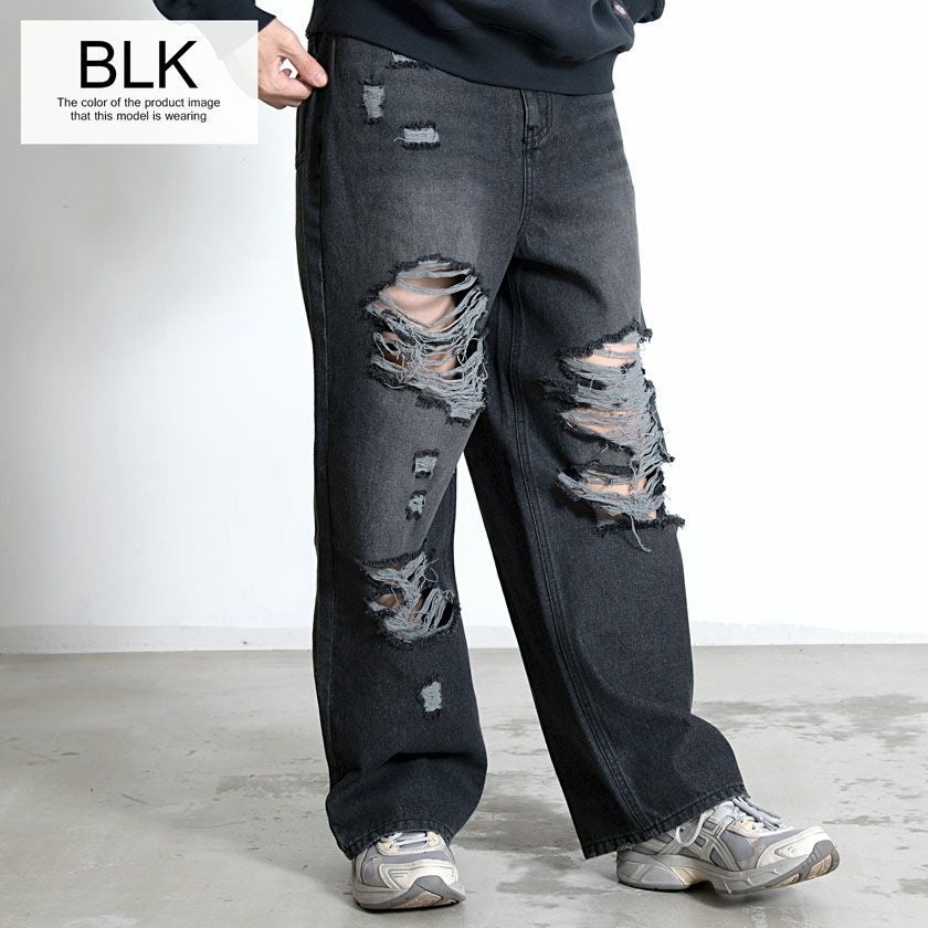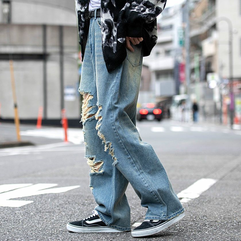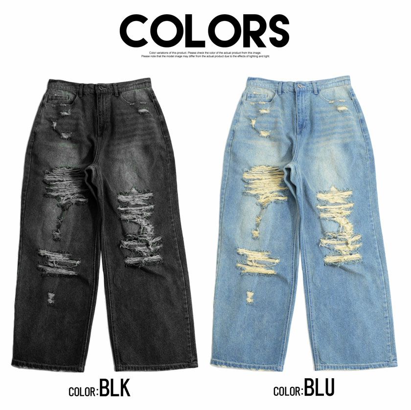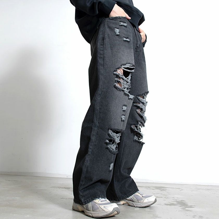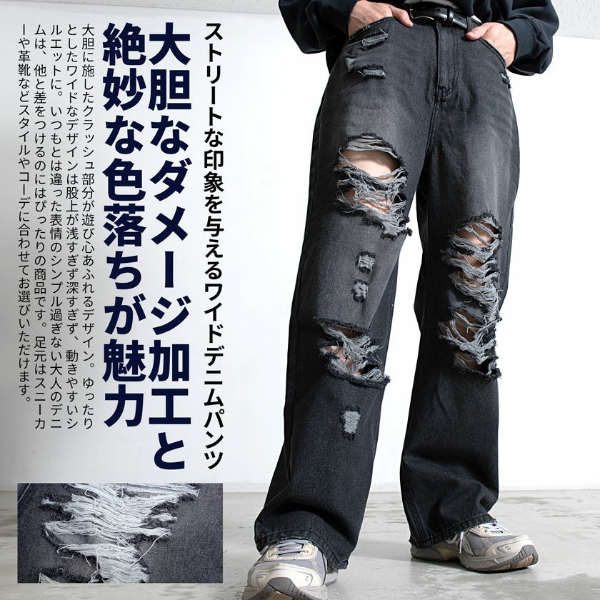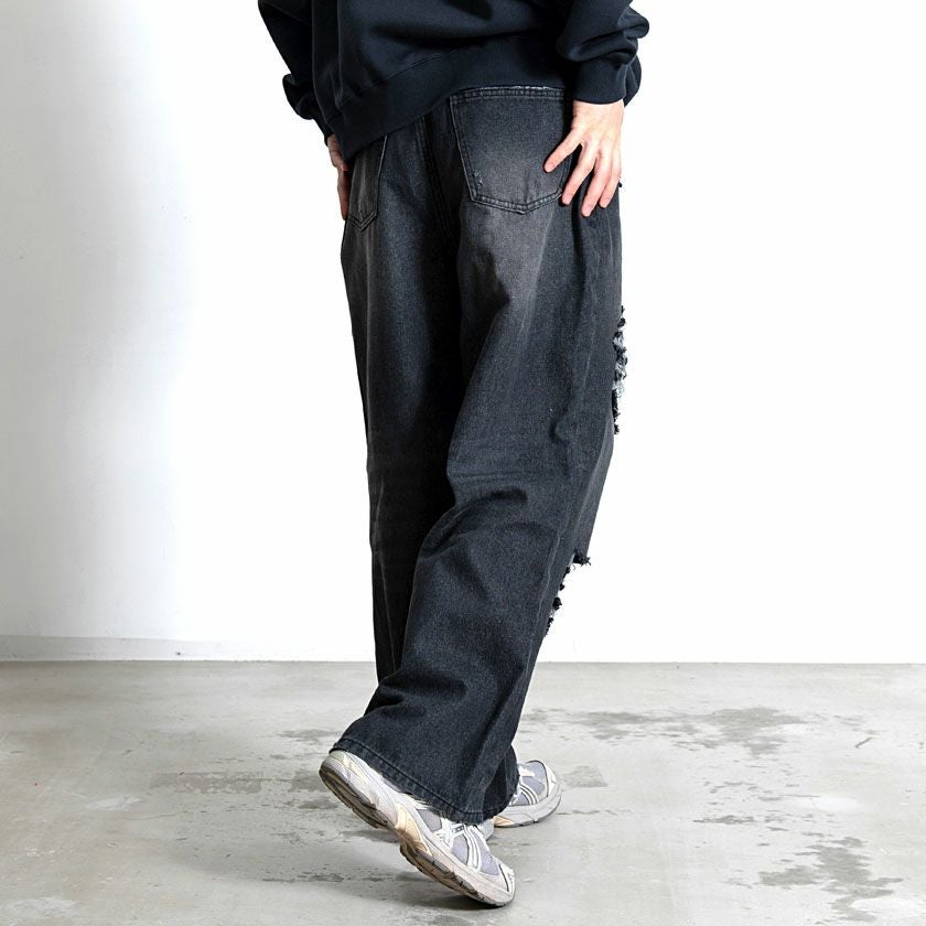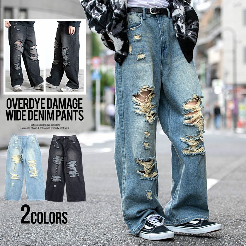 CavariA【キャバリア】オーバーダイダメージワイドデニムパンツ/全2色