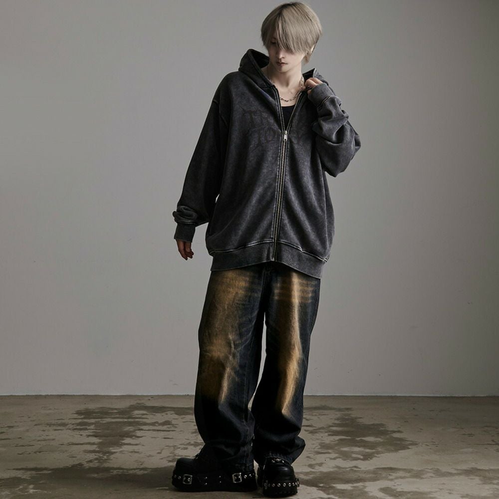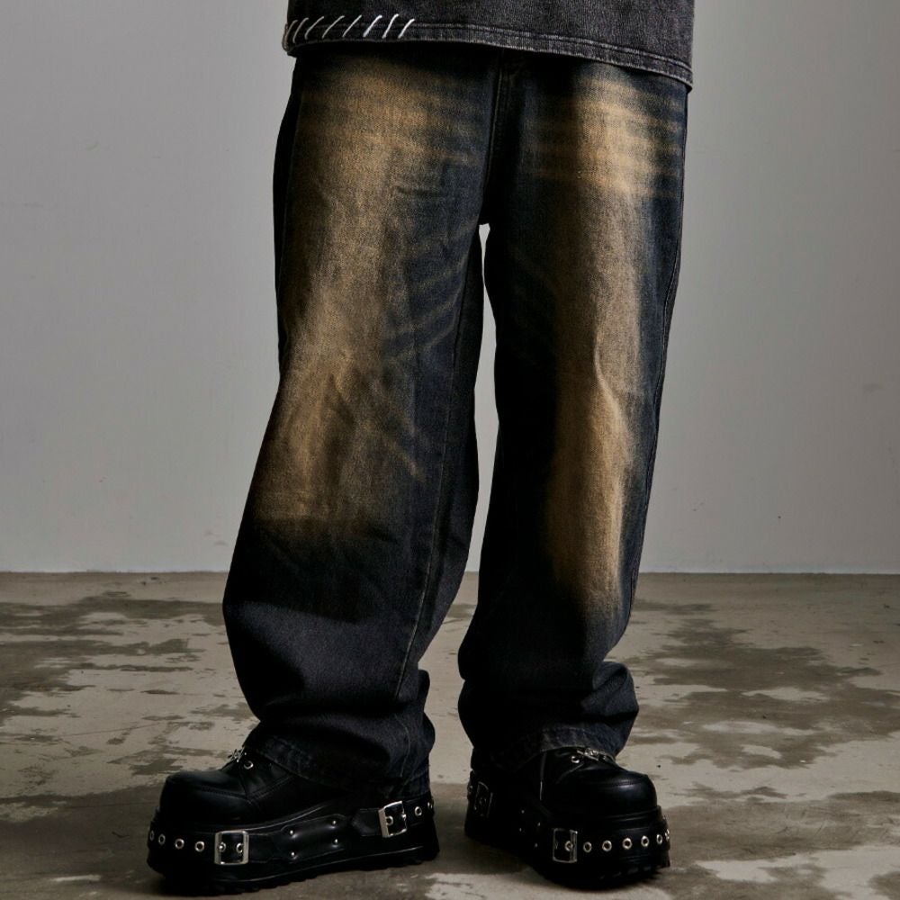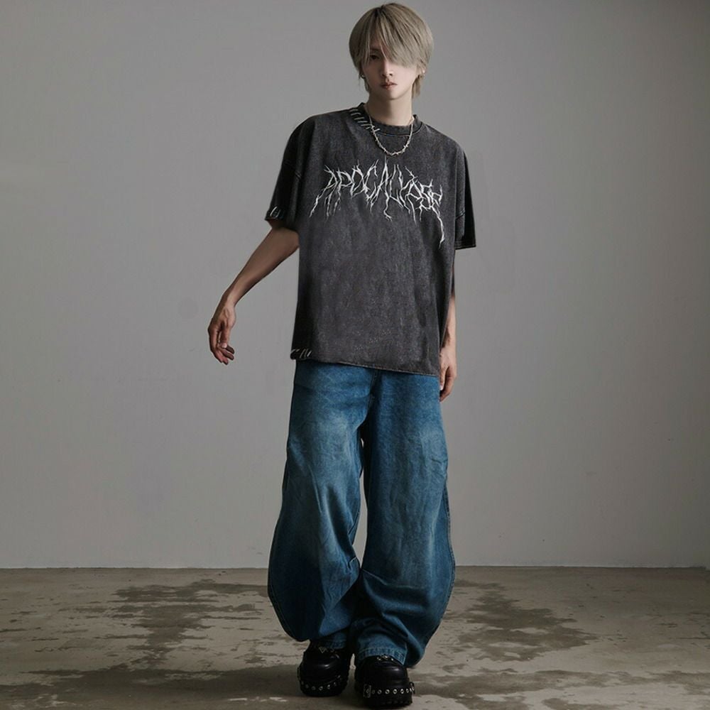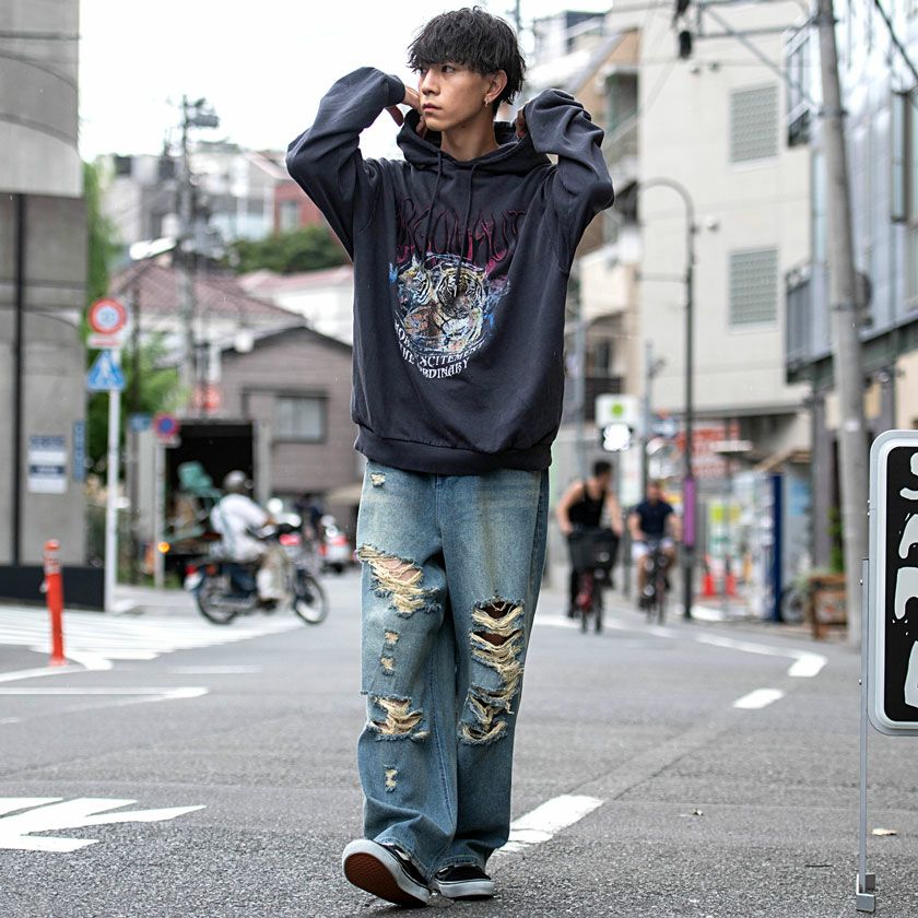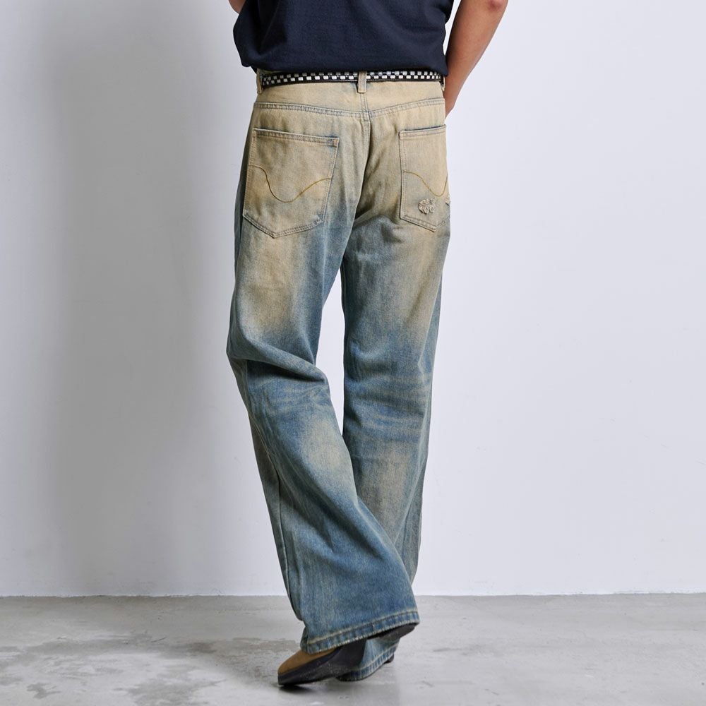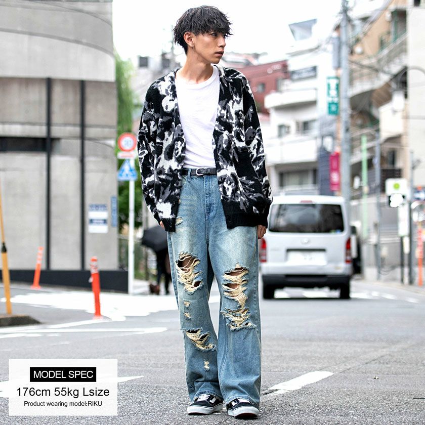 CavariA【キャバリア】オーバーダイダメージワイドデニムパンツ/全2色