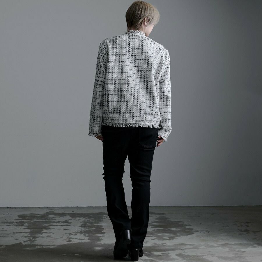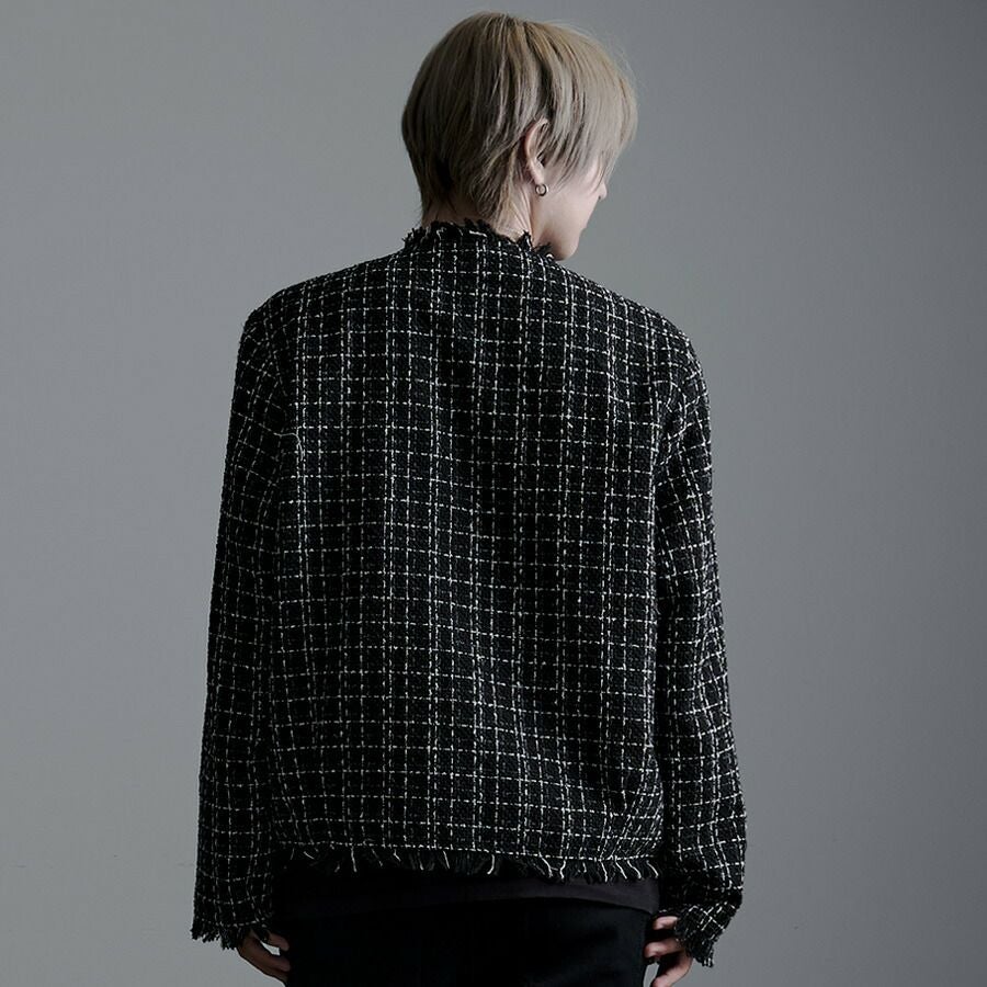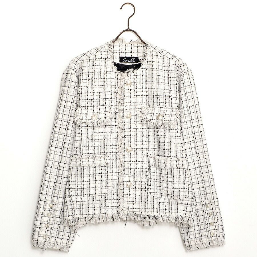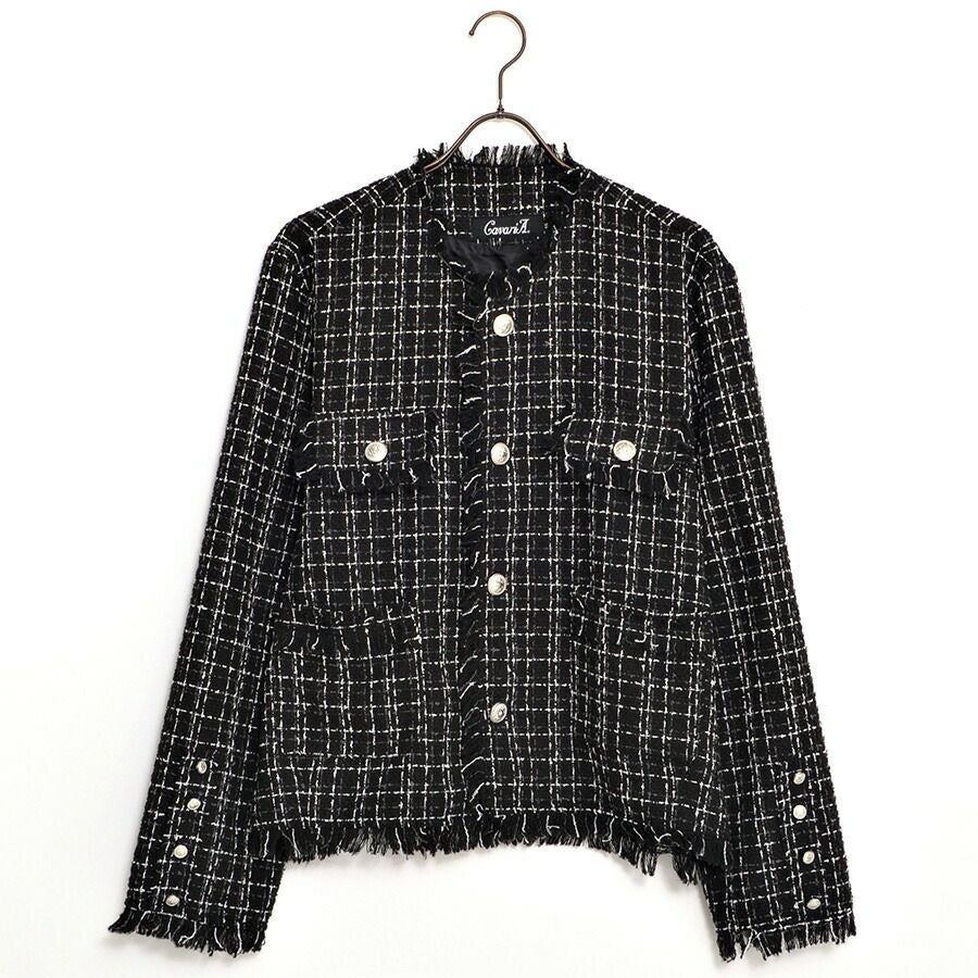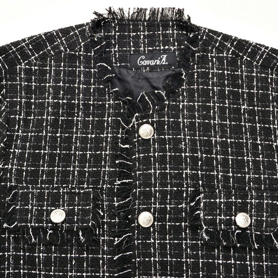 CavariA【キャバリア】ツイードカットオフシルバーボタンノーカラージャケット/全2色