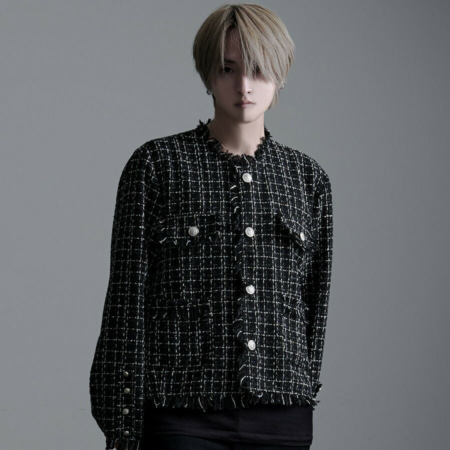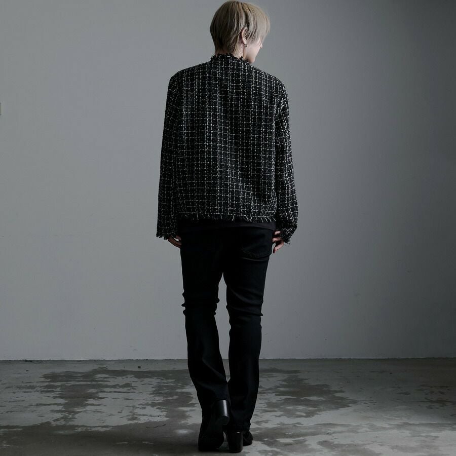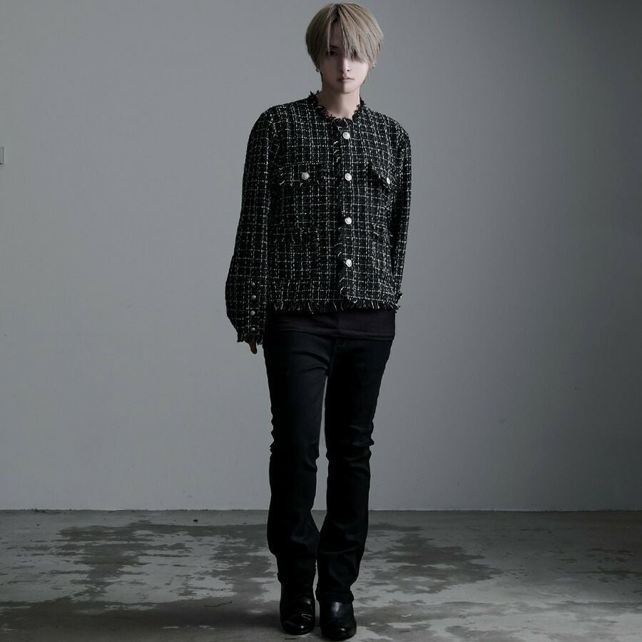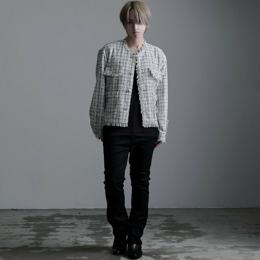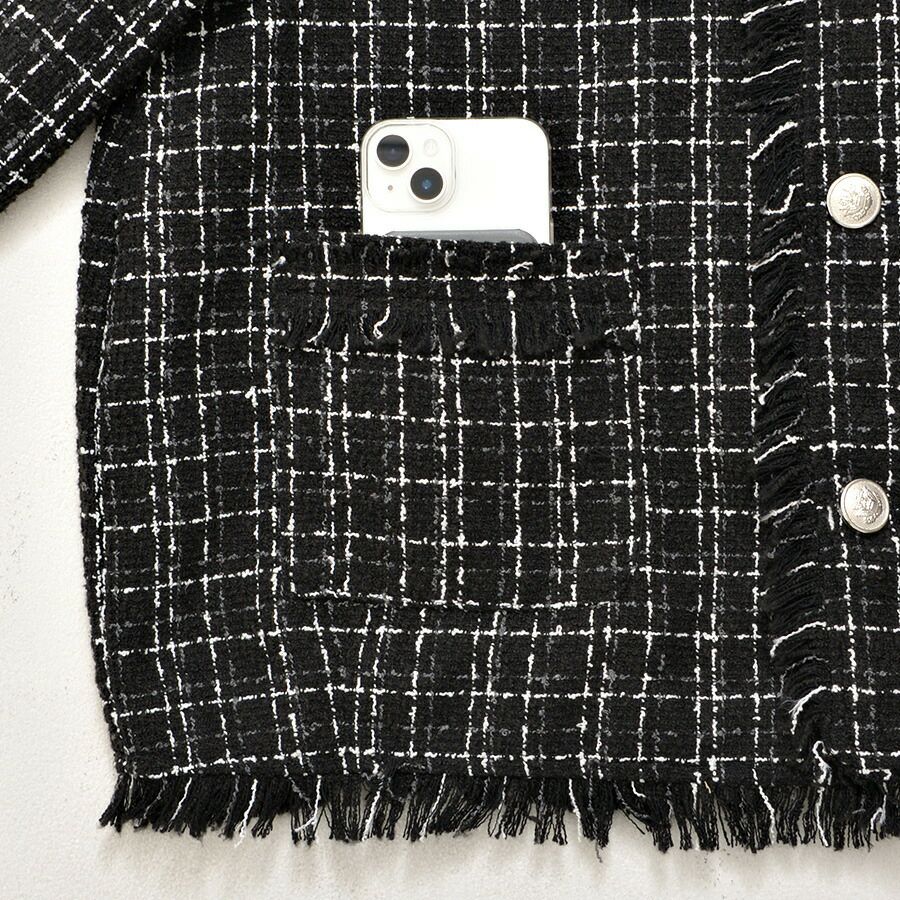 CavariA【キャバリア】ツイードカットオフシルバーボタンノーカラージャケット/全2色