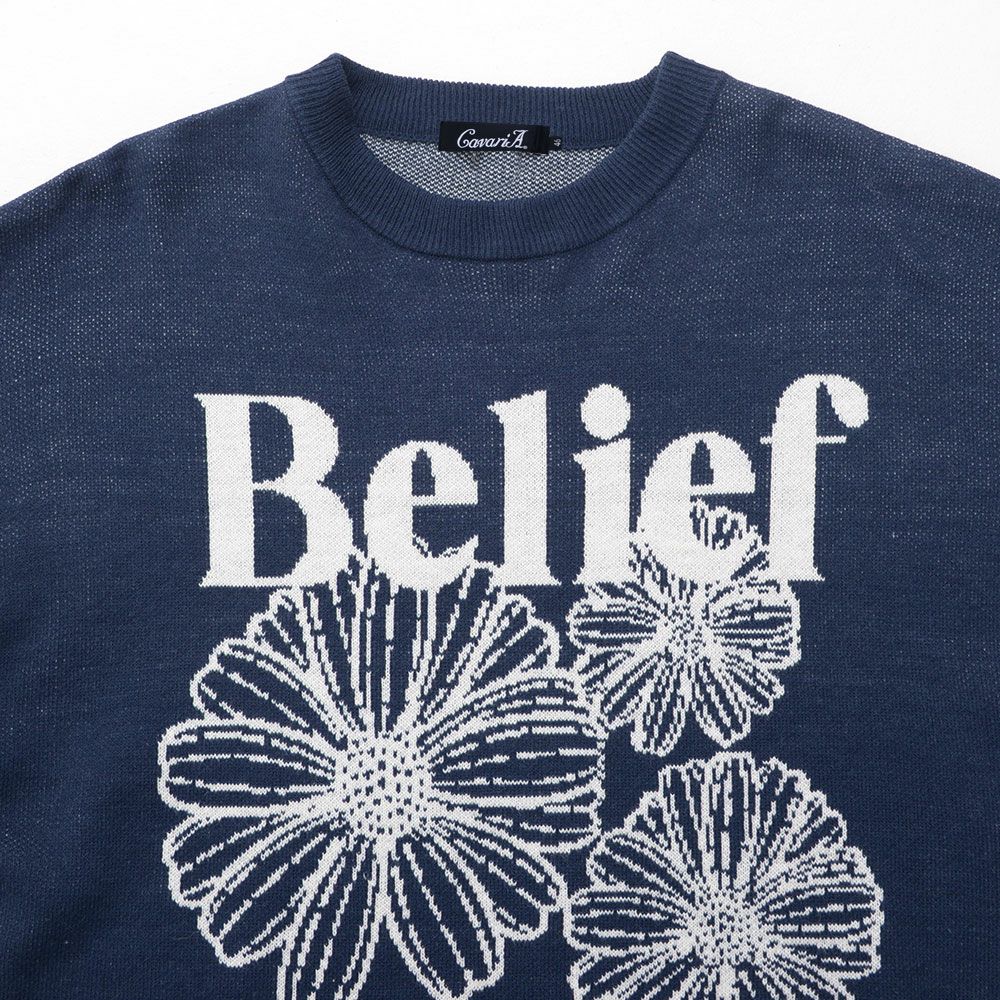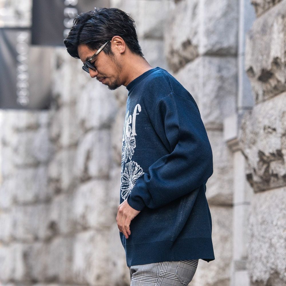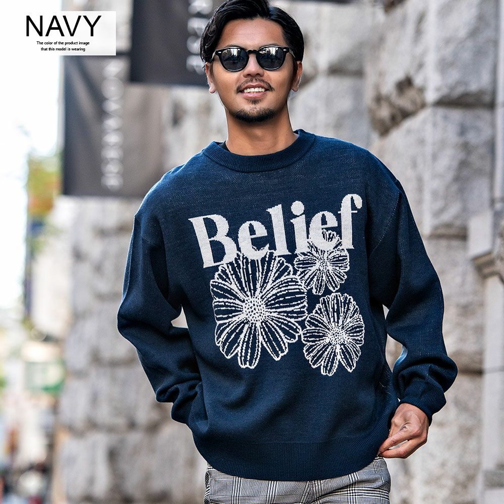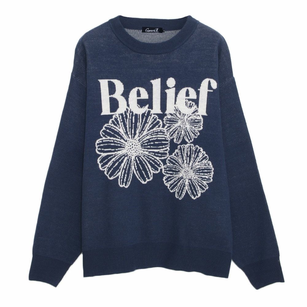 CavariA【キャバリア】フラワージャガードクルー長袖ニット/全2色5ニット