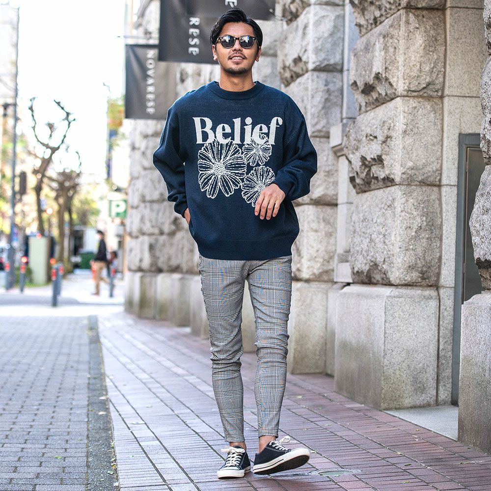 CavariA【キャバリア】ジャガード3Dクルーニット/全4色ニット