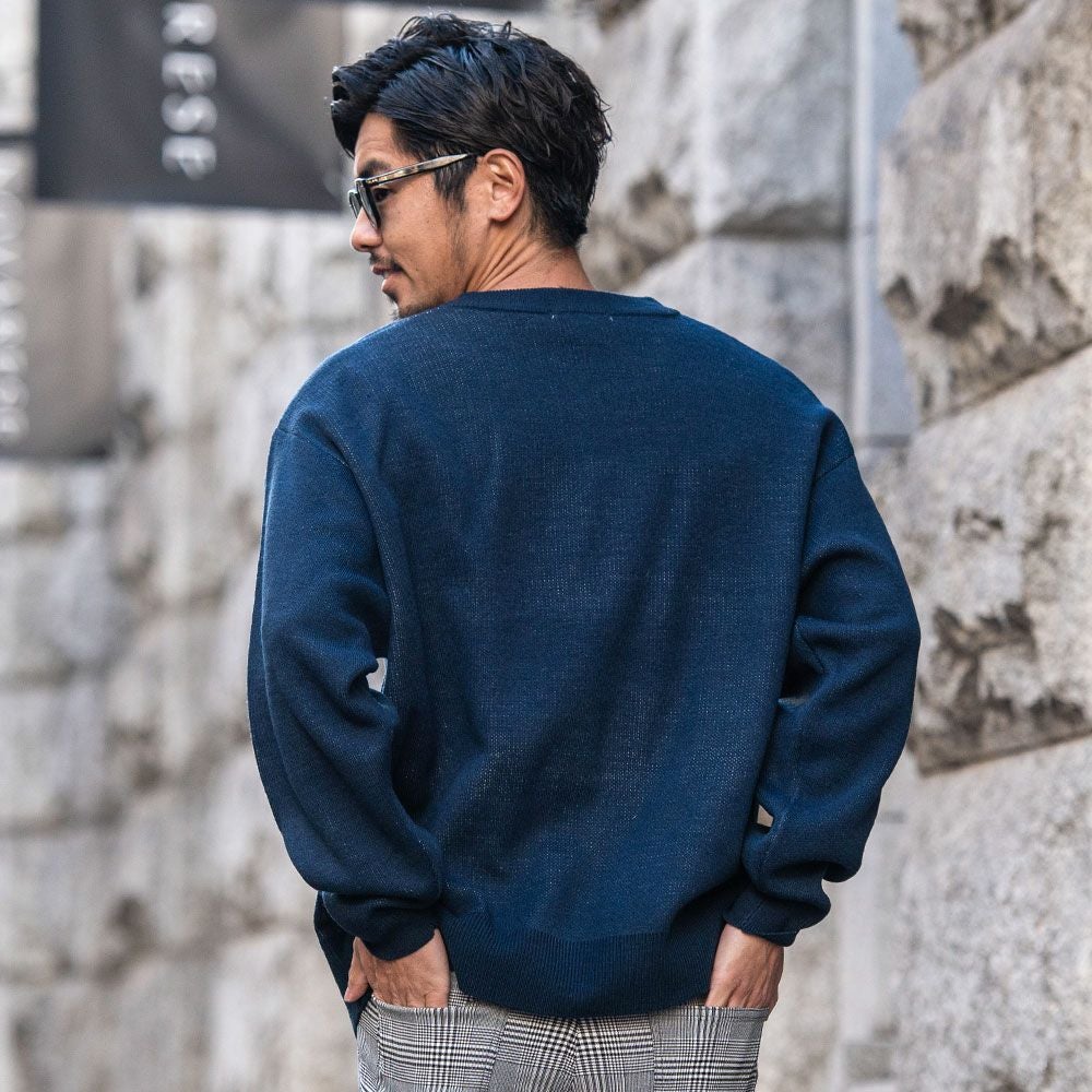 CavariA【キャバリア】クルーネック ジャガードロゴ長袖ニット/全6色ニット