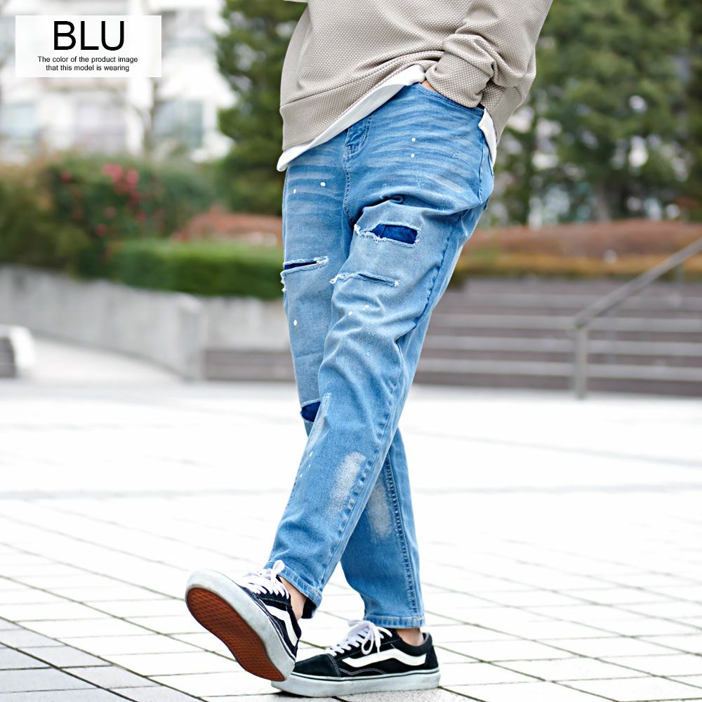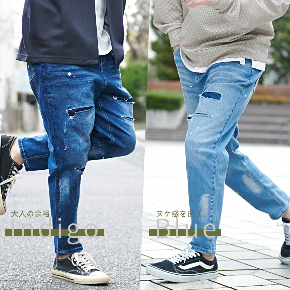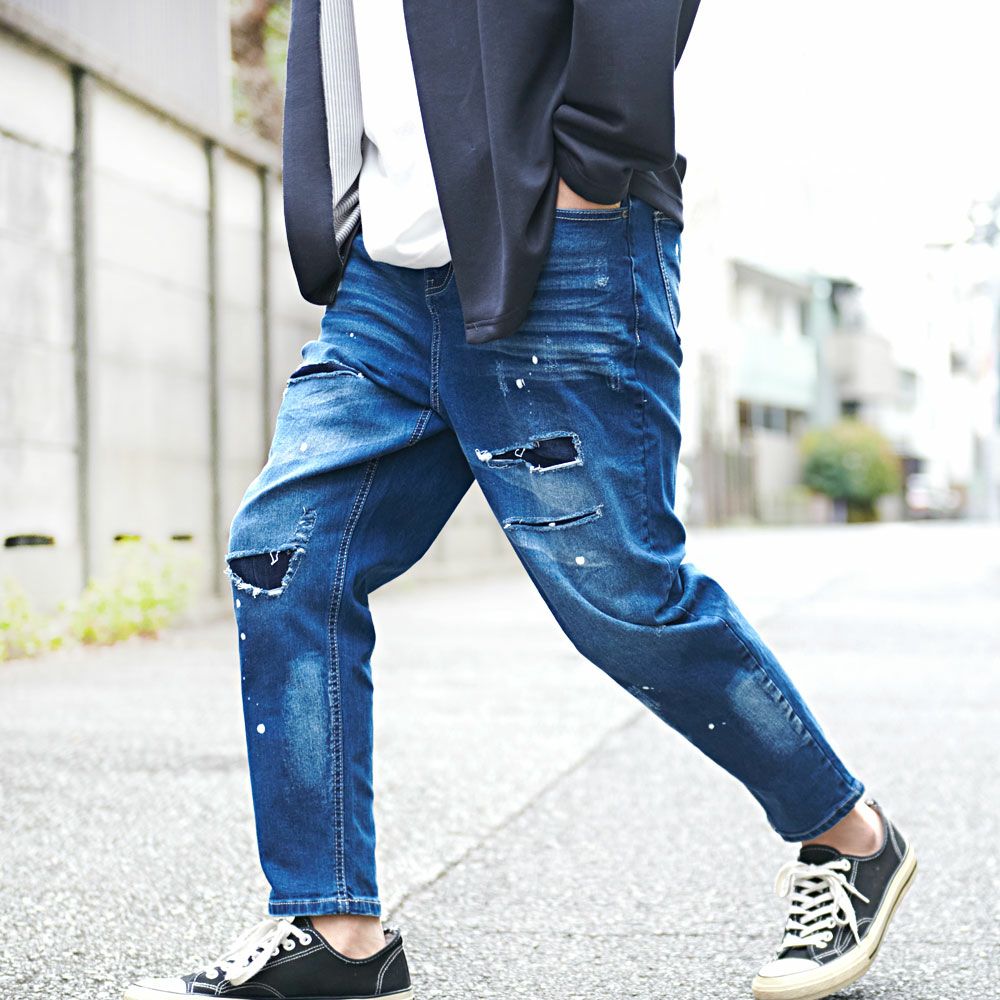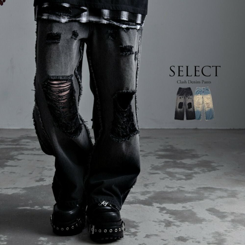 CavariA【キャバリア】ワイドテーパードリペアデニムパンツ/全2色