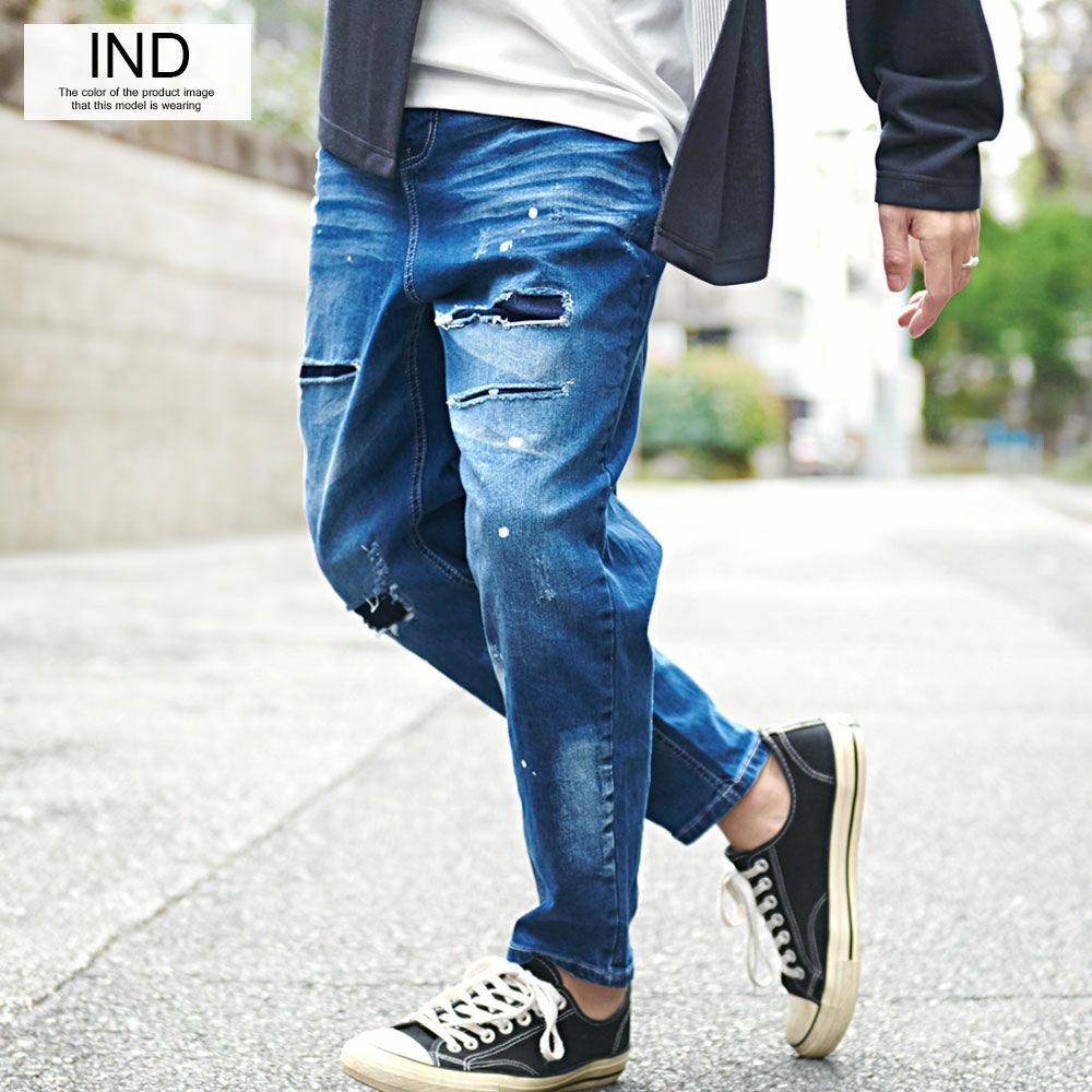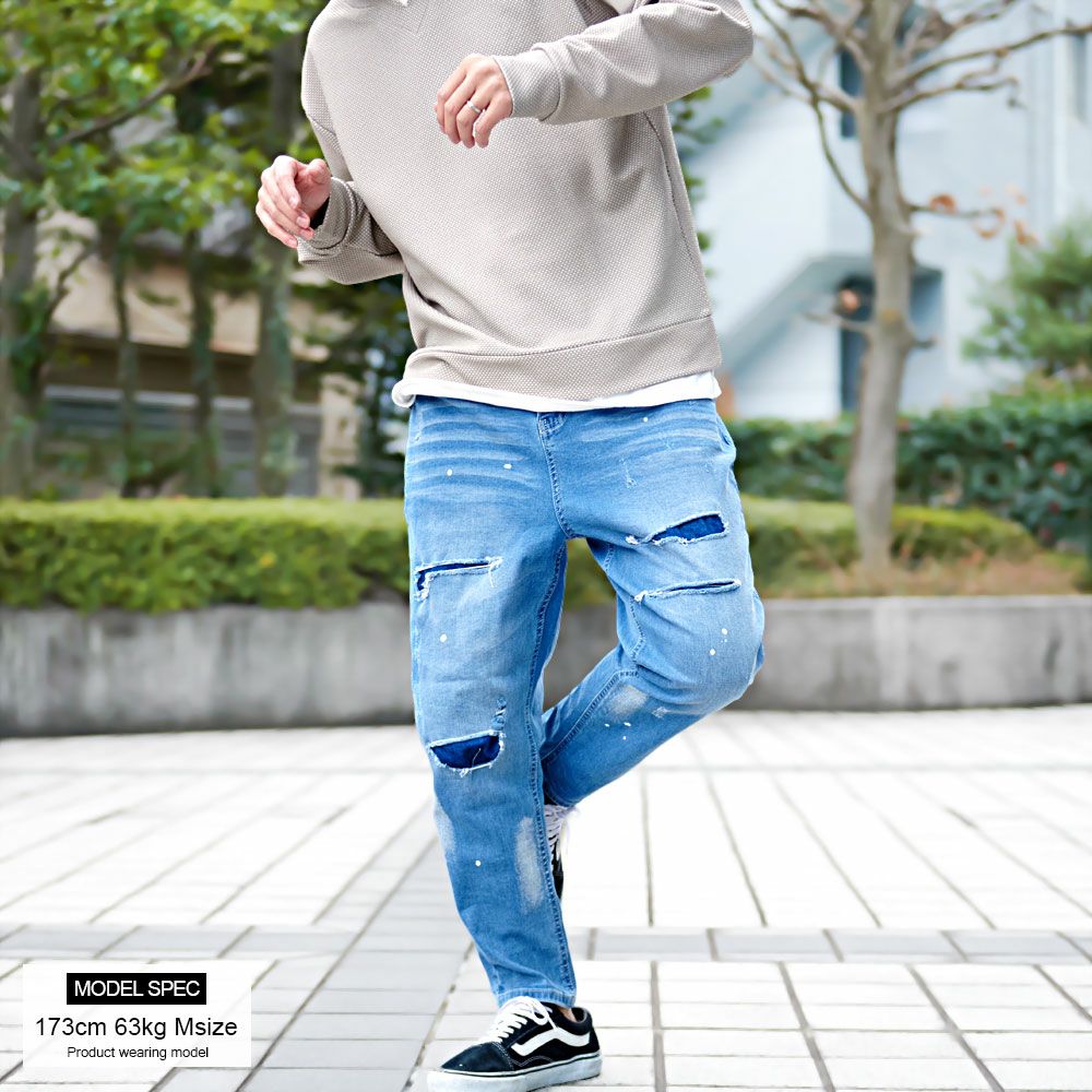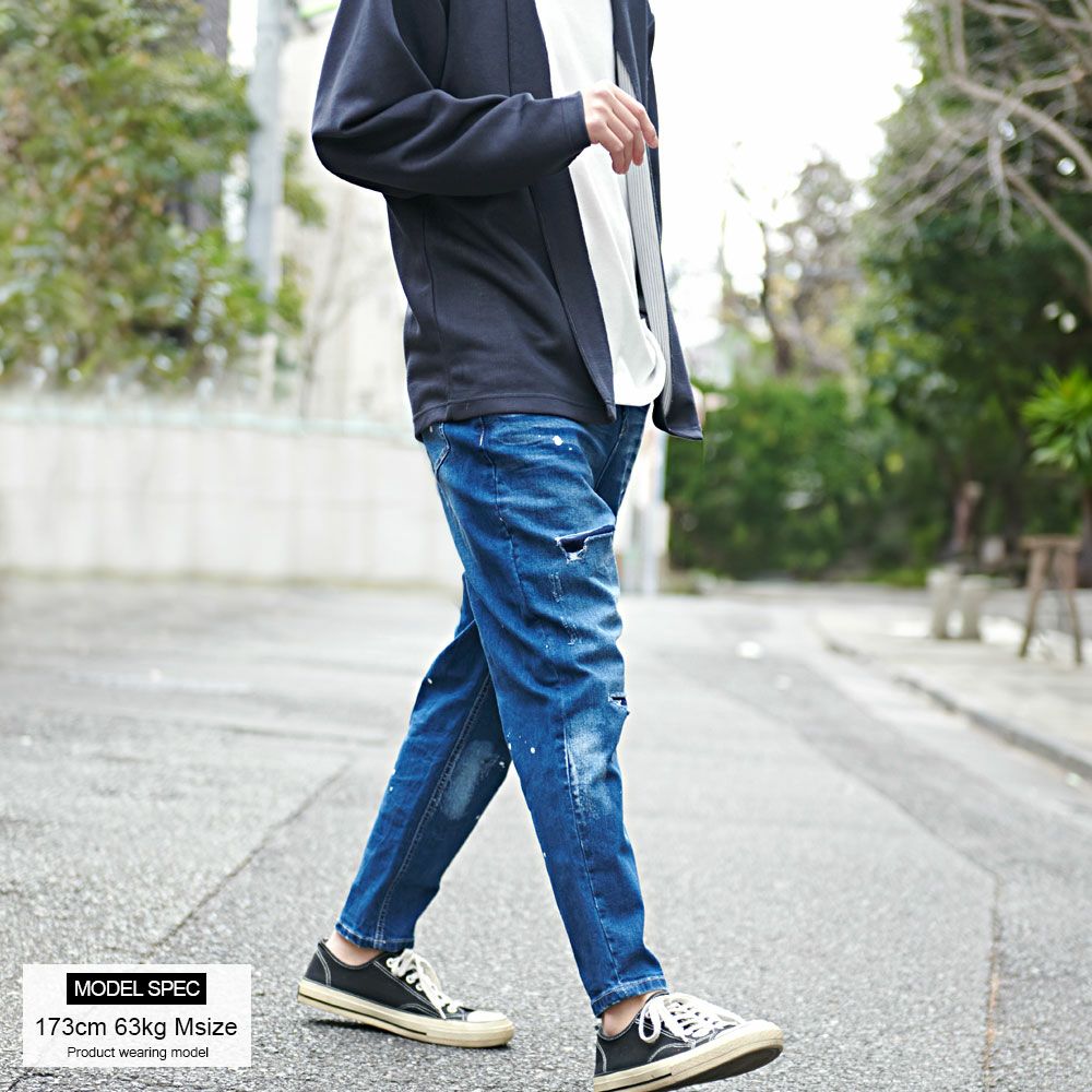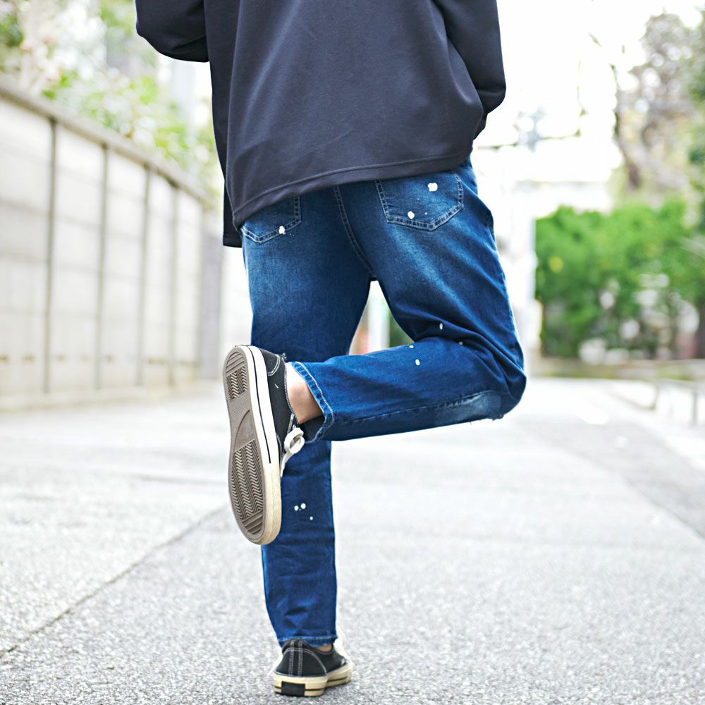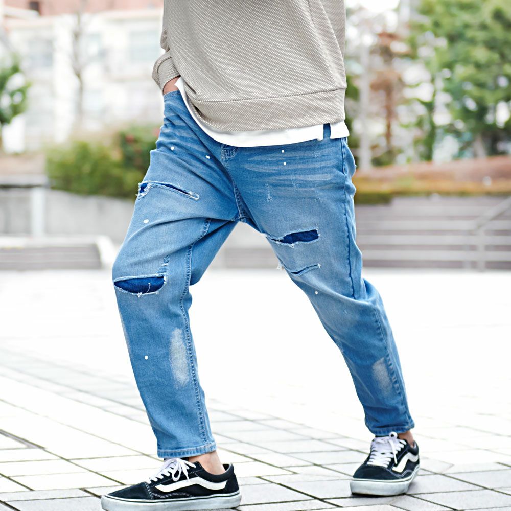 CavariA【キャバリア】ワイドテーパードリペアデニムパンツ/全2色
