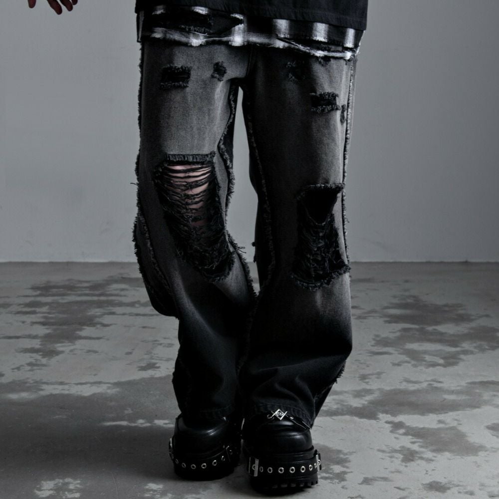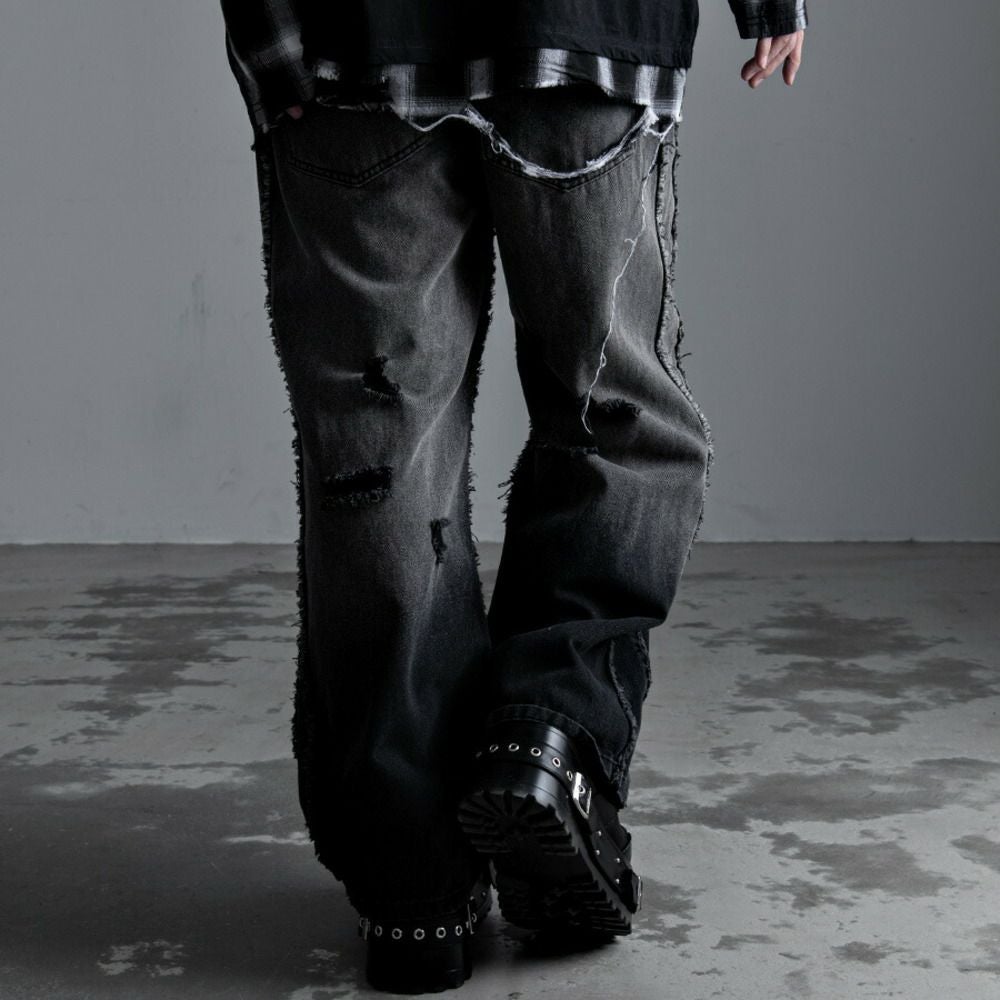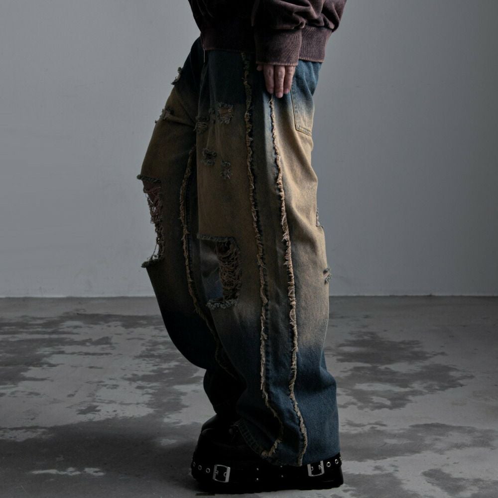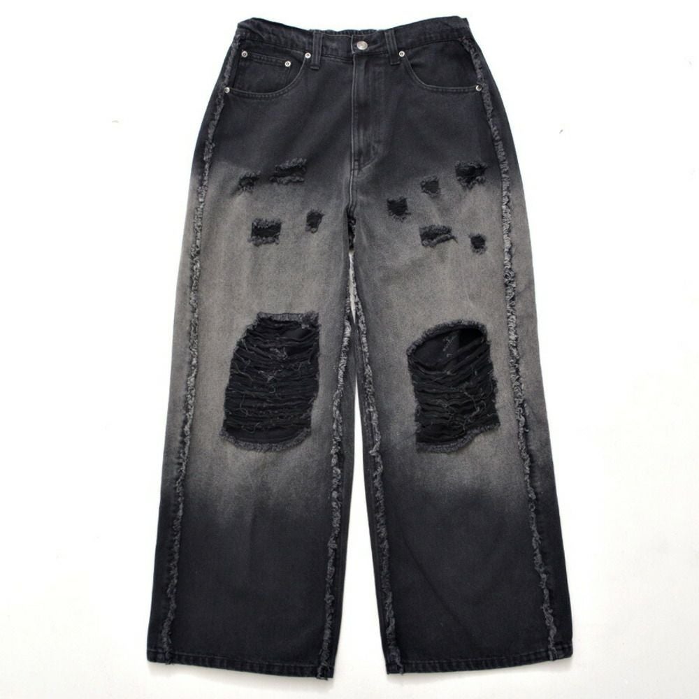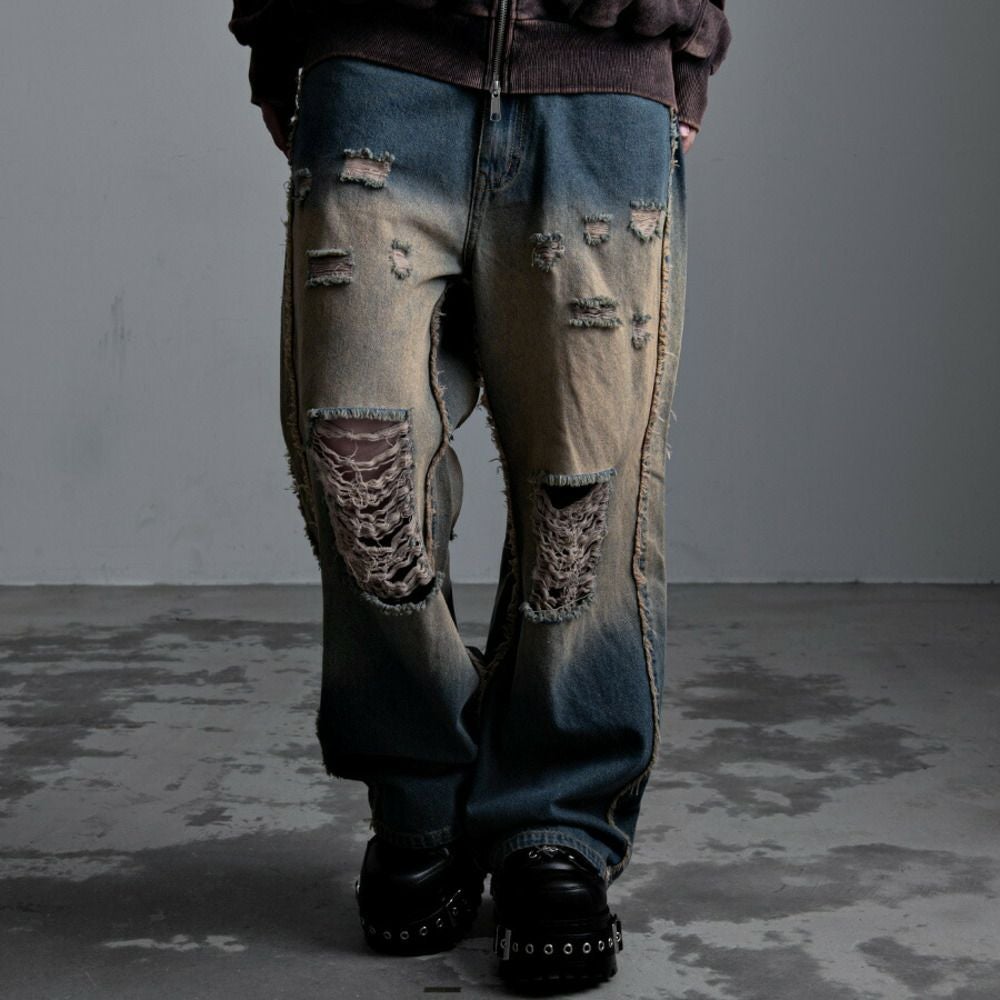 CavariA【キャバリア】サイドフリンジグラデーション加工fバギーデニム/全2色