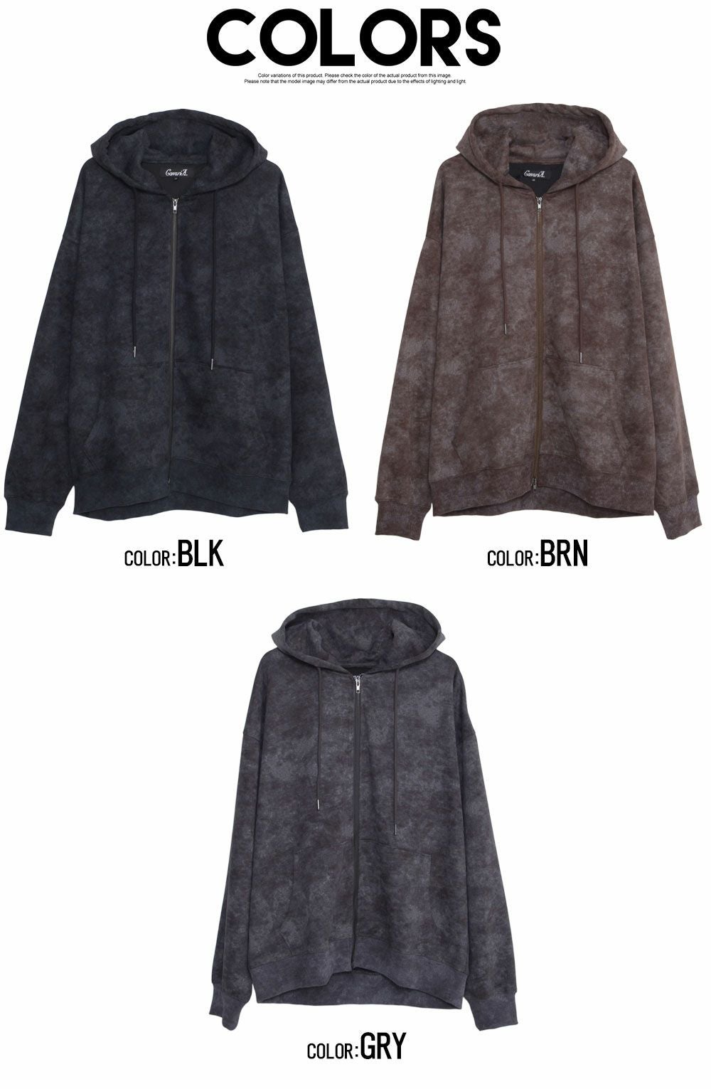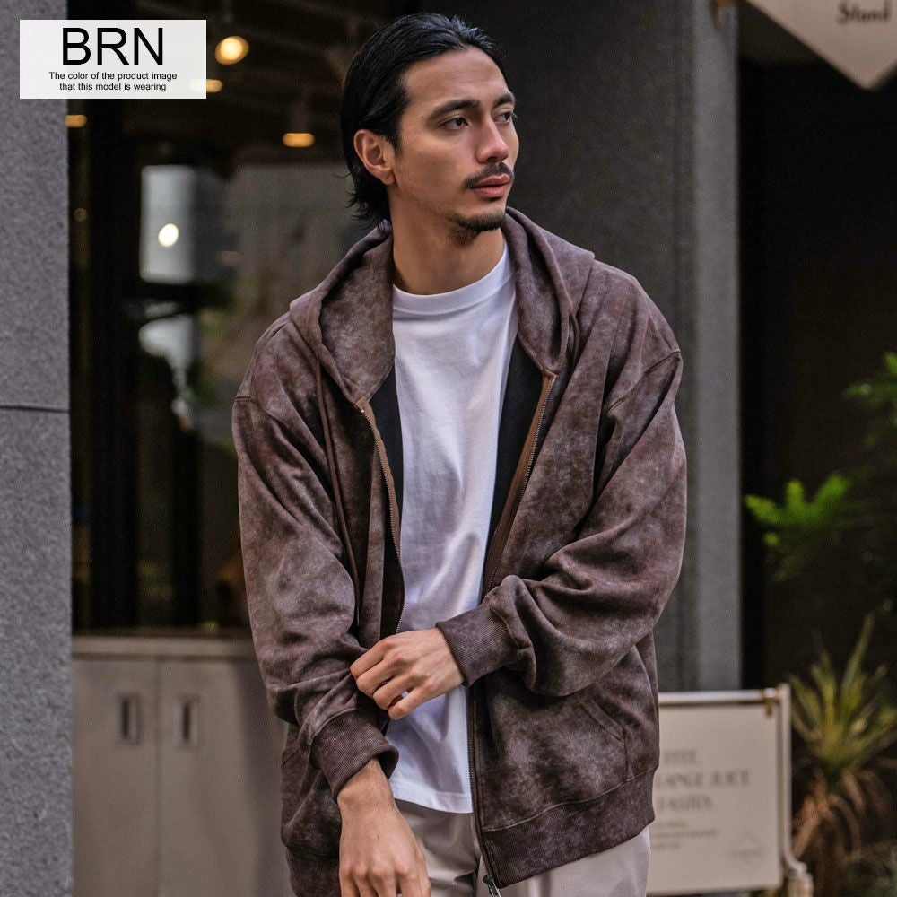 CavariA【キャバリア】ケミカル加工プリントZIP長袖パーカー/全3色パーカー