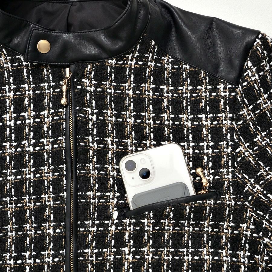 CavariA【キャバリア】ツイードシングルライダースジャケット/全2色