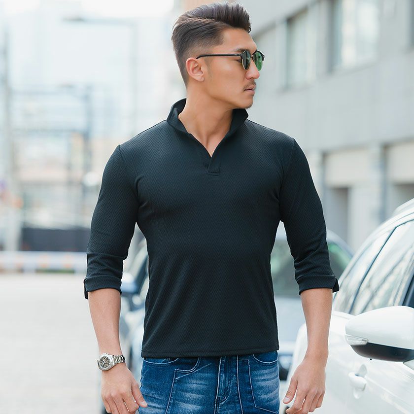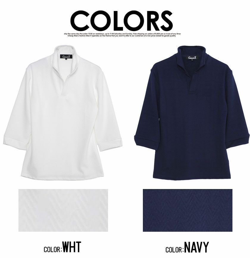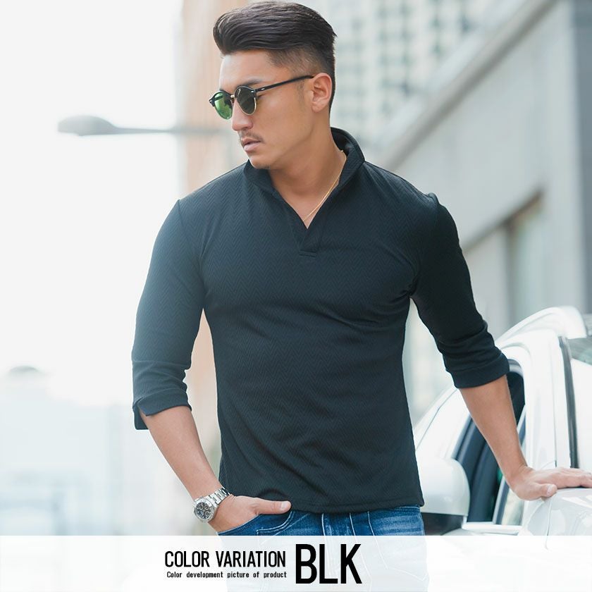 他の画像を見る CavariA【キャバリア】ふくれヘリンボーン柄イタリアンカラ―7分袖ポロシャツ/全3色【メール便対応】 価格 ¥ 6,490 税込 CavariA カートに入れる お気に入りに登録する