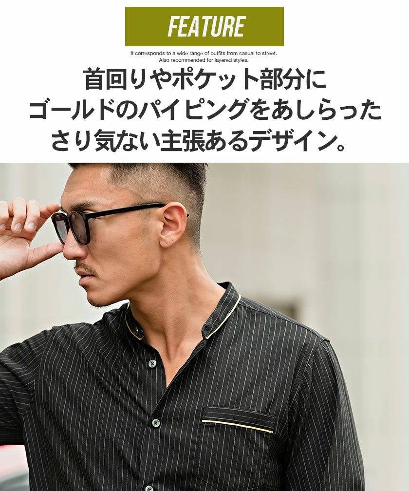 他の画像を見る CavariA【キャバリア】ゴールドパイピング入りバンドカラー長袖ストライプシャツ/全3色【シャツ】【メール便対応】 価格 ¥ 5,390 税込 CavariA カートに入れる お気に入りに登録する