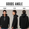 センターにロゴ刺繍、カンガルーポケット、裾部分にスリットを施すなど細部にまで拘ったアイテムです。