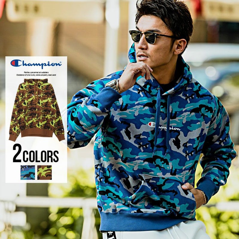 【SALE】Champion【チャンピオン】カモフラージュ柄ロゴ刺繍長袖プルオーバーパーカー/全2色パーカー