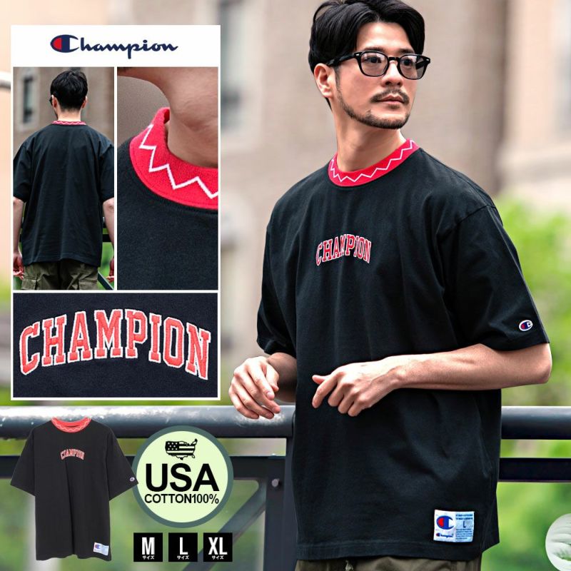 左胸にはアーチ状にデザインしたブロックフォントの「CHAMPION(チャンピオン)」刺繍入り。