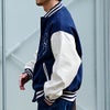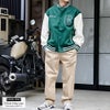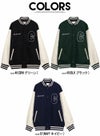 フロントのCロゴワッペン、ライン入りリブ、配色切り替えなど、スタジャンらしいクラシカルな要素を散りばめつつ、モダンで洗練された印象にまとめています。