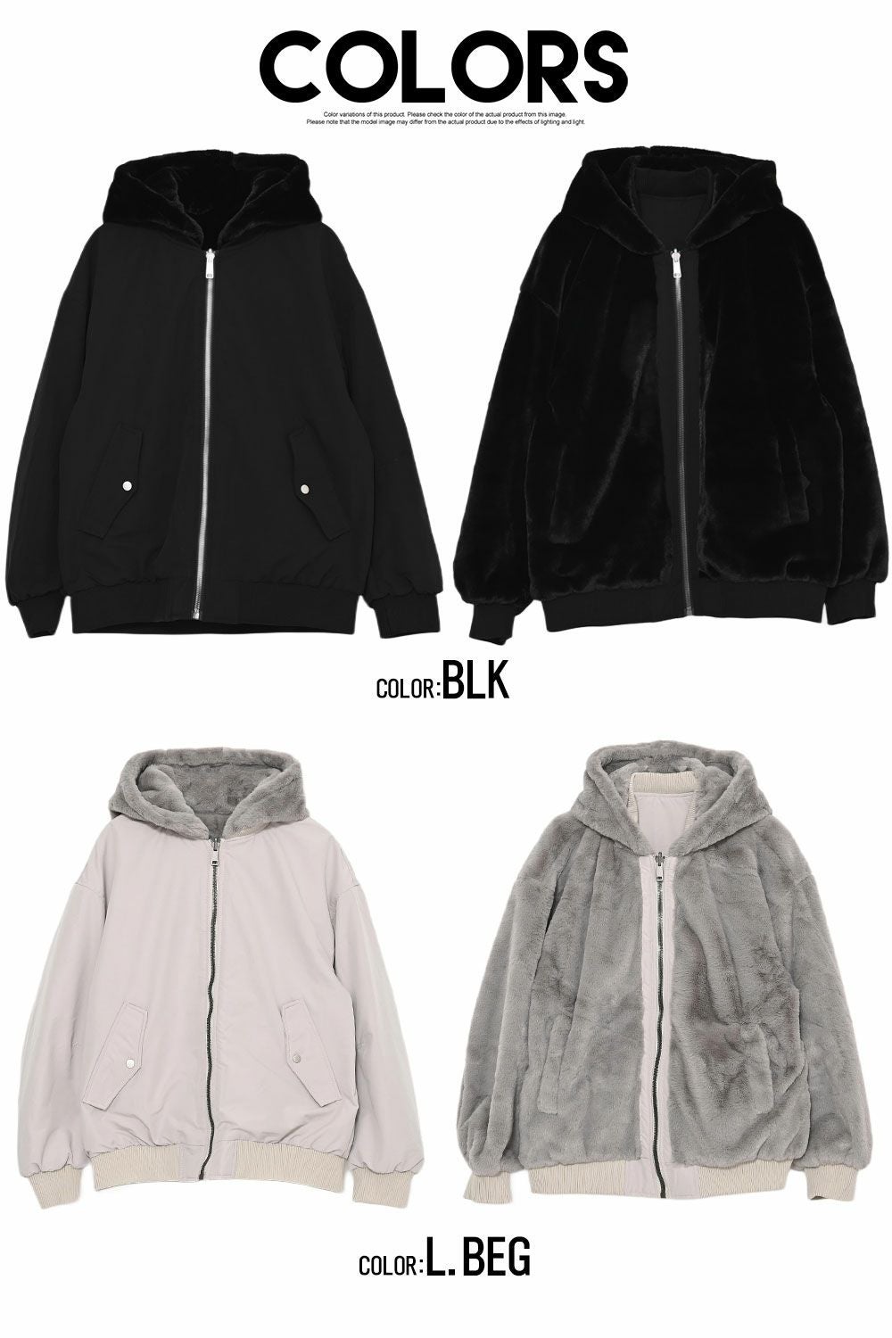 ARULE【アルール】リバーシブルフード付きファージャケット/全2色