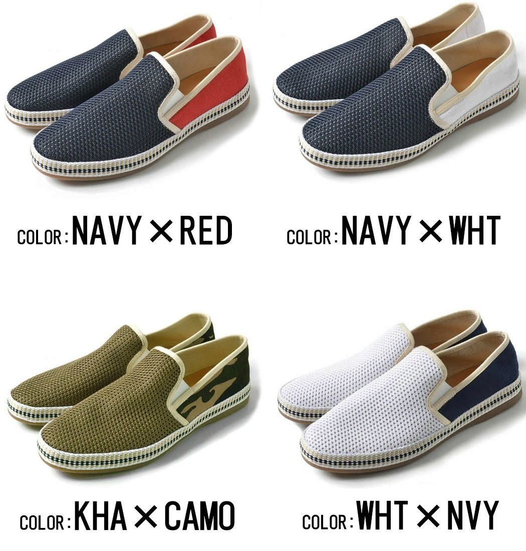 人気商品です★ 【SALE】DEDES【デデス】バイカラーメッシュスリッポン(スリップオン)/全6色[ネイビー×ホワイト/ネイビー×レッド/カーキ×カモフラ(迷彩)/ホワイト×ネイビー]