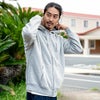 程よい厚みで弾力がある綿、ポリエステルの混紡を使用したジップアップパーカー。