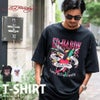 フロントにイーグルとロゴを独特のデザインで施したインパクト抜群のTシャツ。