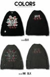 こなれ感のあるダメージ加工にロックテイストなパロディーデザインが印象的で、右裾に配されたオリジナラベルがアクセントになっています。