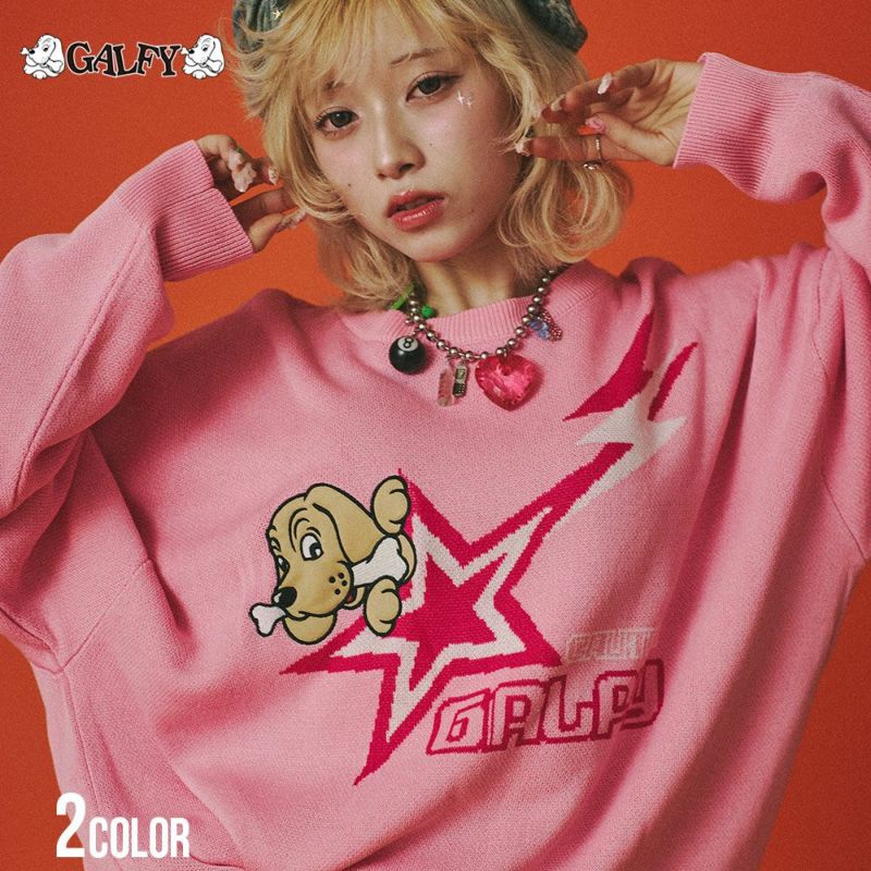 GALFY ガルフィー ガルフィ ニット セーター 長袖 メンズ レディース ユニセックス ロゴ いぬ イヌ 犬 星 スター ジャガード キャラクター 大きいサイズ ビッグシルエット オーバーサイズ ゆったり L ピンク 黒 春 冬 カジュアル ストリート ストリート系 ストリートファッション 病み系 韓国 韓国系 韓国ファッション おしゃれ 男性 男 父の日 父の日ギフト 父の日プレゼント 20代 30代 40代 メンズファッション 東京 プレゼント 誕生日 記念日 贈り物 ギフト