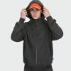 ハイネックデザインを採用した裏起毛ジップパーカー
