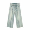 ■センタープリーツが施されたブリーチワイドデニム