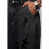 ハードなダメージ加工がお洒落なブラックデニムです。