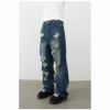 デニムパンツ メンズ おしゃれ ジーパン Gパン デストロイ ハードクラッシュ ブルー ストーンウォッシュ加工 擦り加工 髭加工 ジーンズ ワイドデニム デニム パンツ ワイドパンツ 脚長効果 色落ち ヴィンテージ 古着風 ビンテージ 韓国 個性的 Lazy Tokyo オールシーズン 20代 30代 40代 ユニセックス 男性 男 服 夏 夏服 ファッション 東京 プレゼント 誕生日 記念日 贈り物 ギフト