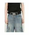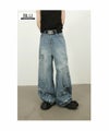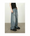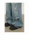 ■細かいダメージ加工が施されたワイドブルーデニム