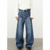 個性的な加工感が目を惹くセミワイドストレートデニムです。