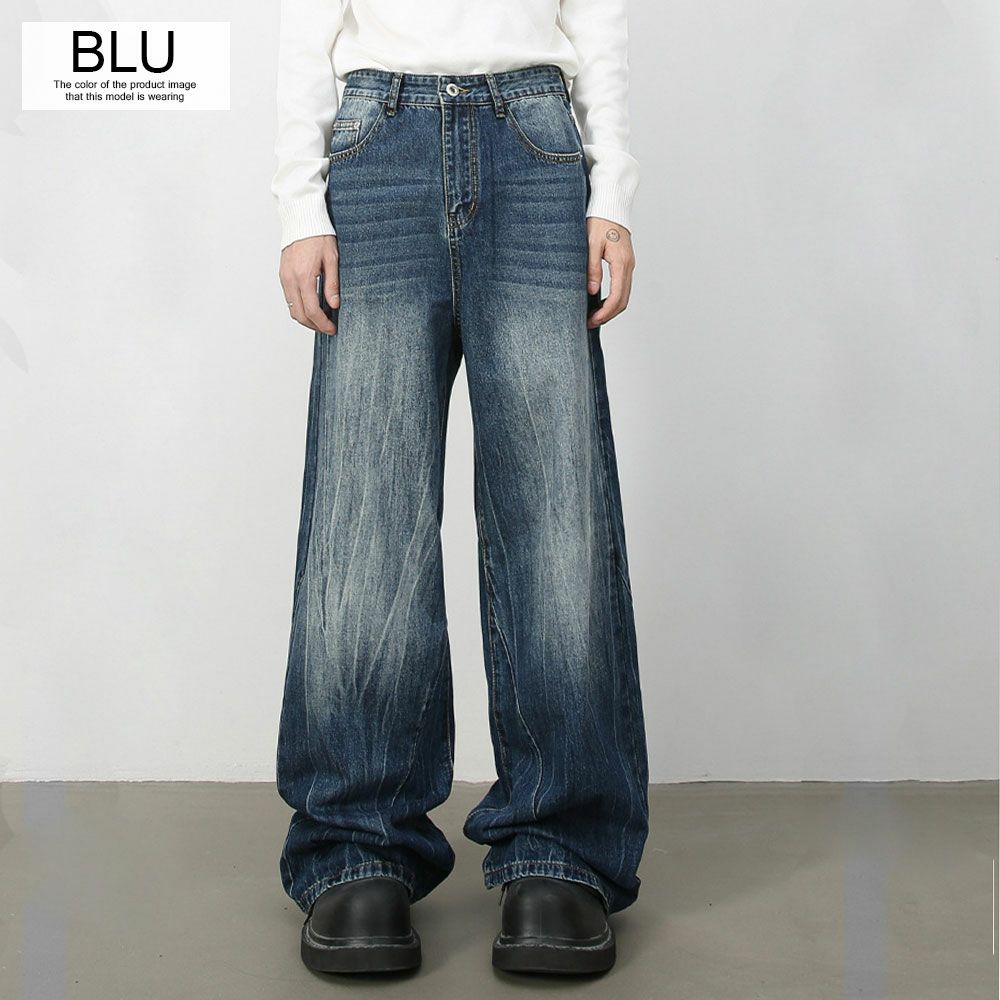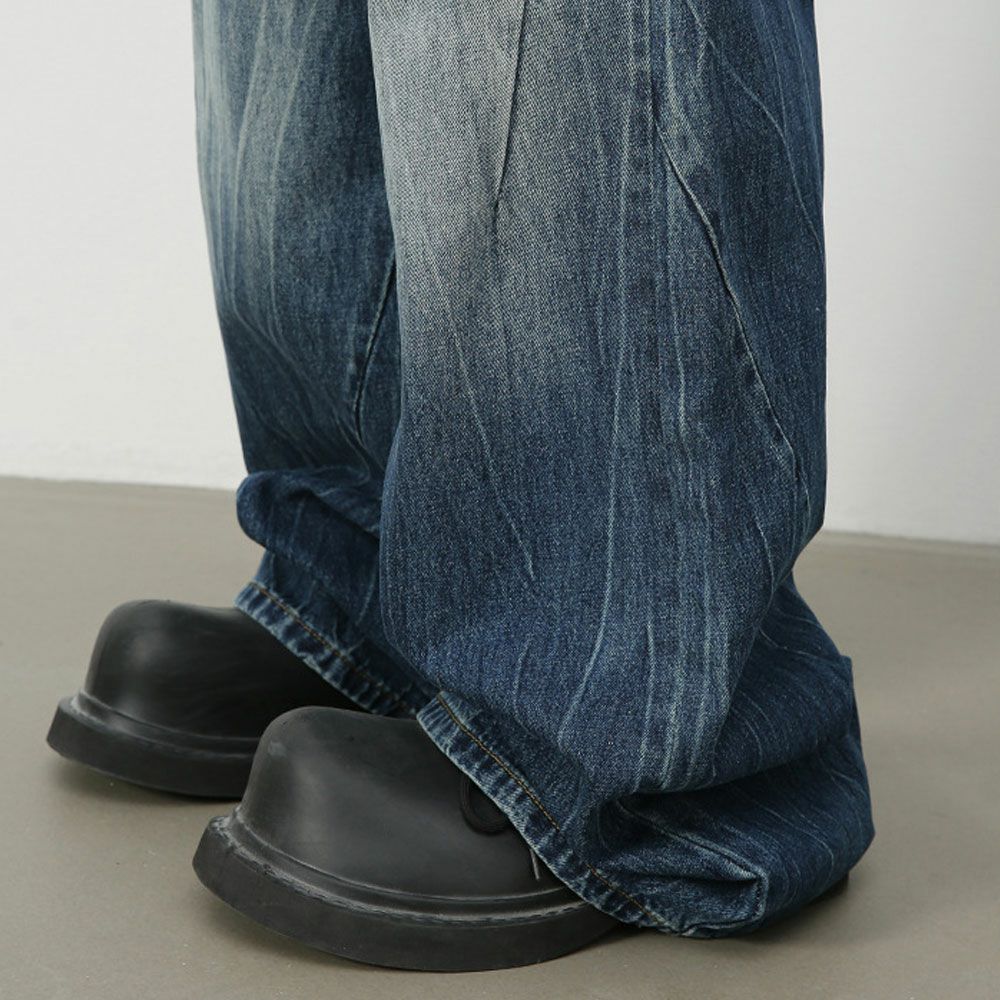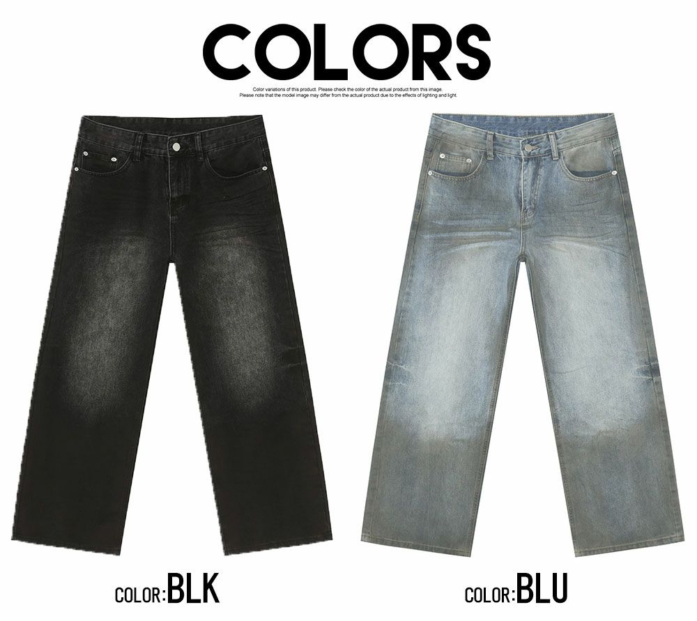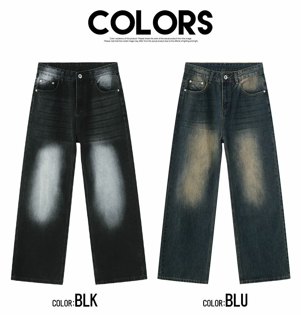 Lazy Tokyo【レイジートウキョウ】ライトニングウォッシュワイドバギーデニムパンツ/全2色