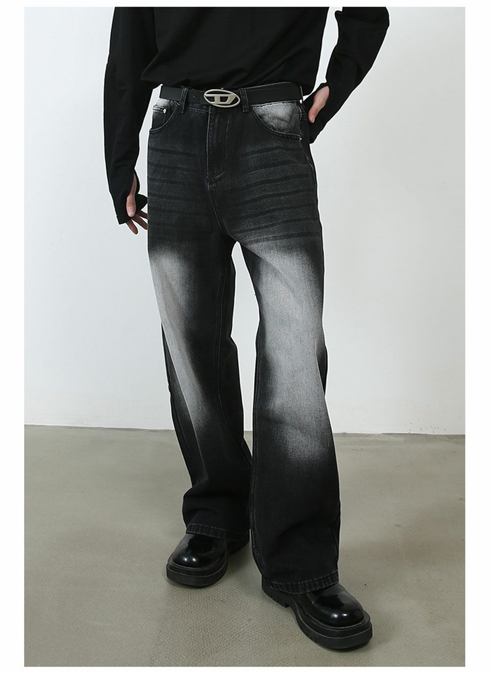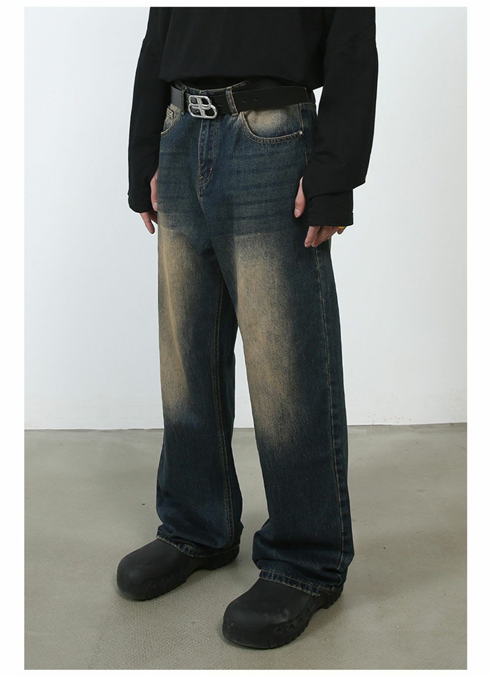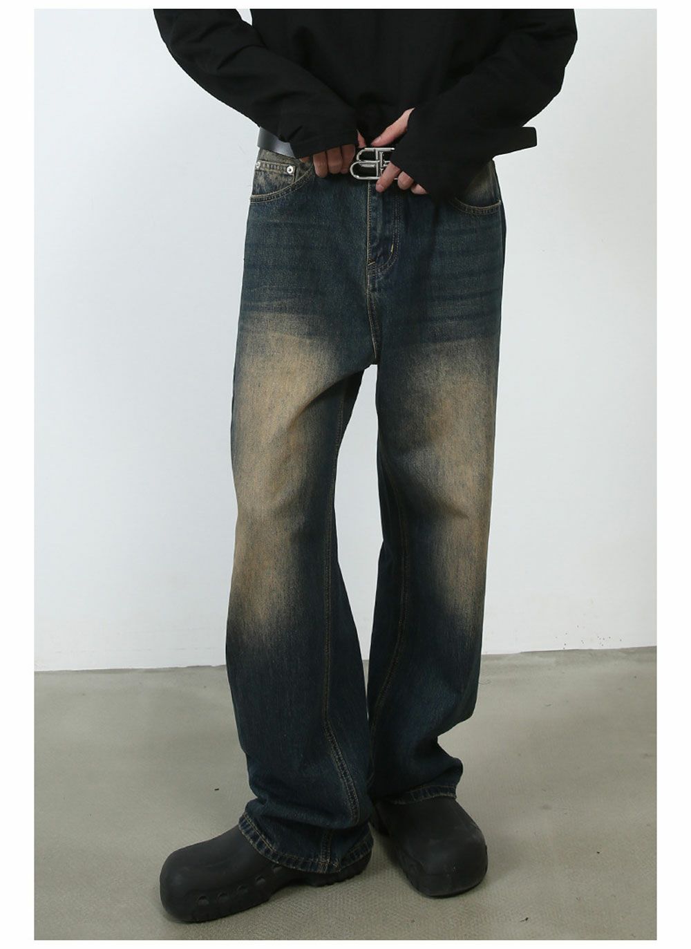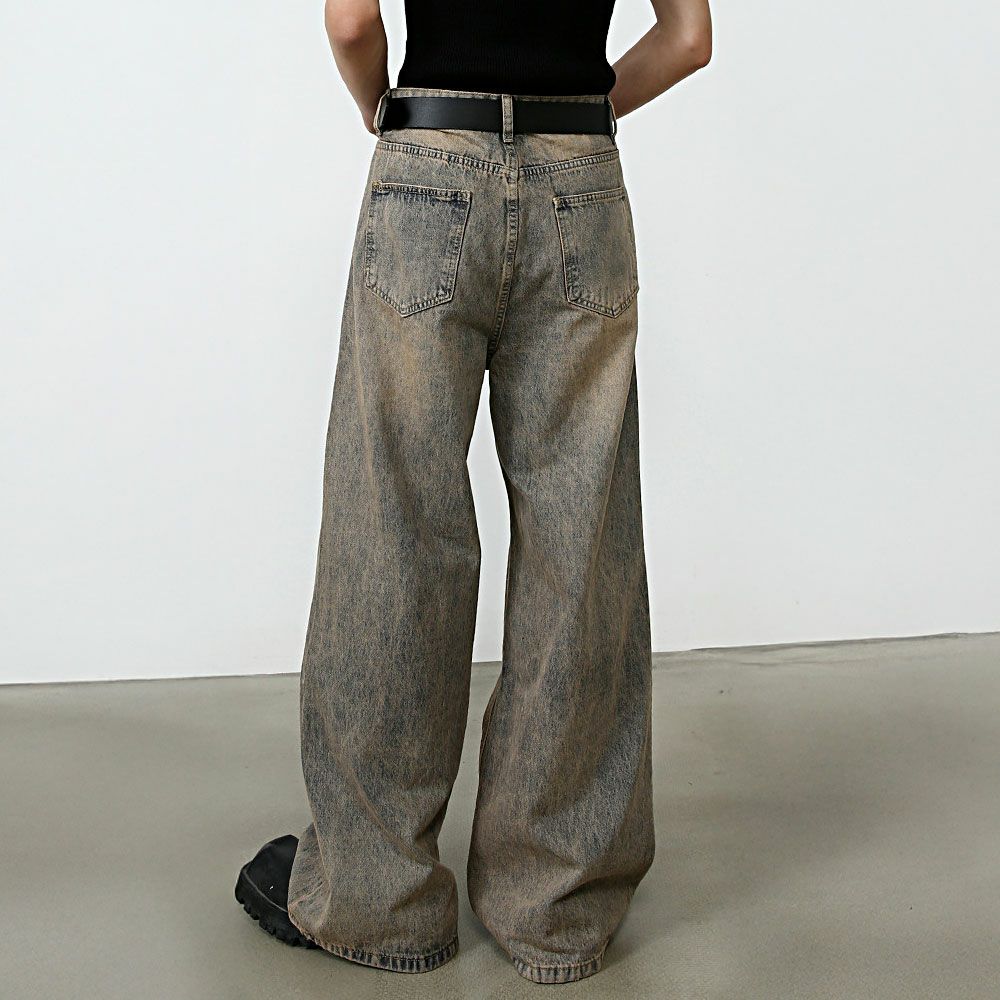 Lazy Tokyo【レイジートウキョウ】ライトニングウォッシュワイドバギーデニムパンツ/全2色