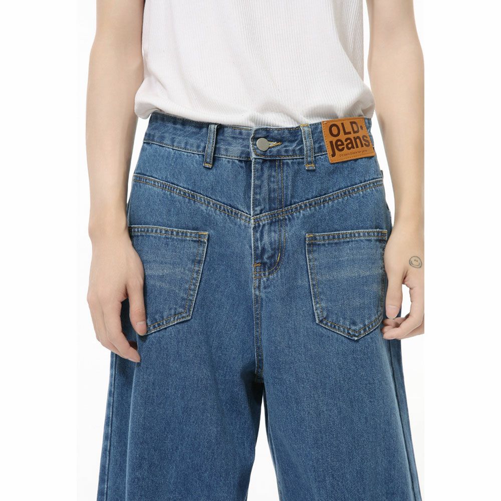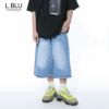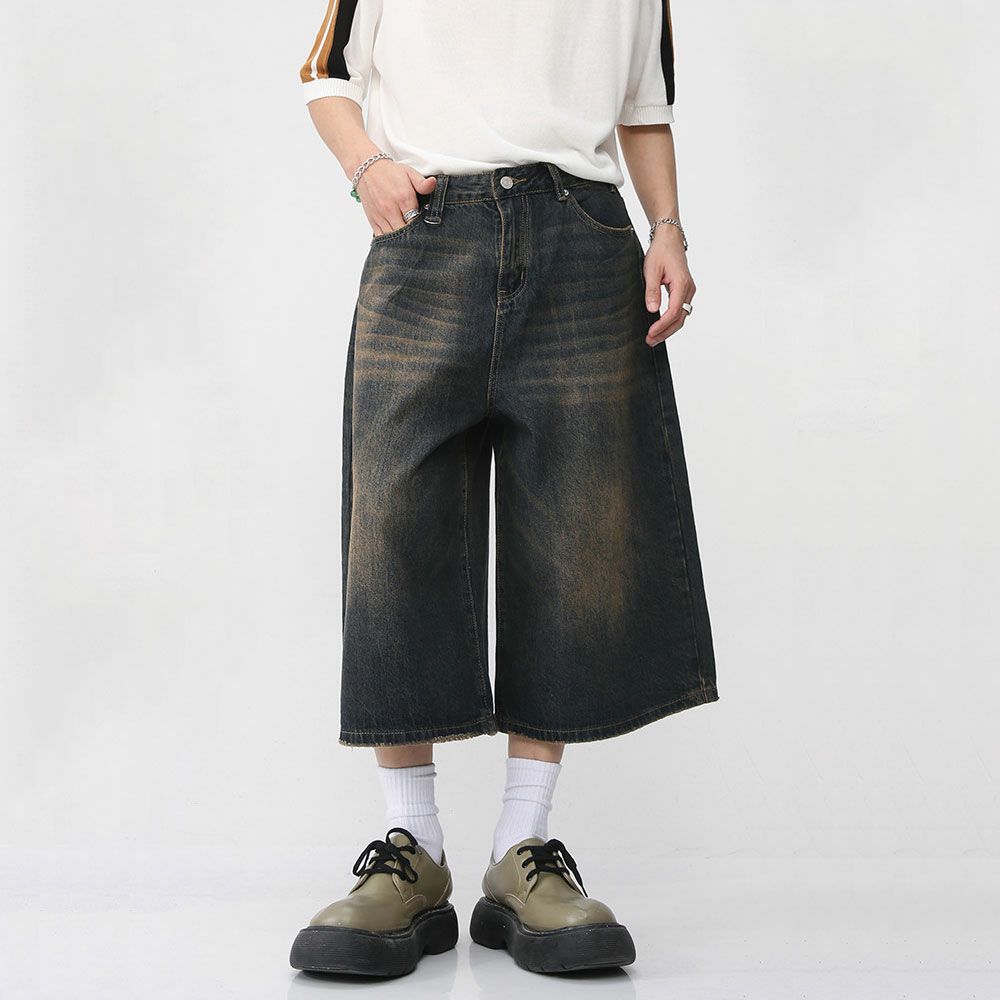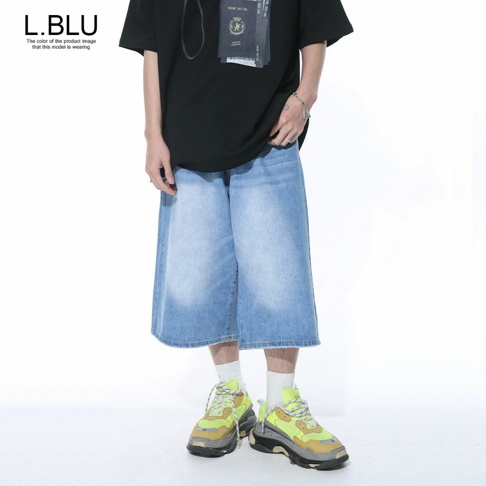 Lazy Tokyo【レイジートウキョウ】リバースディティール半端丈ワイドデニムパンツ/全2色ハーフパンツ