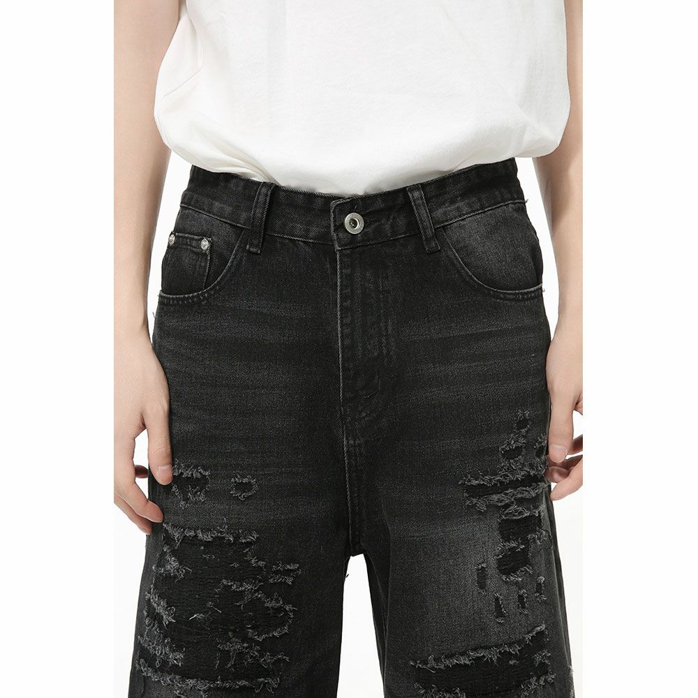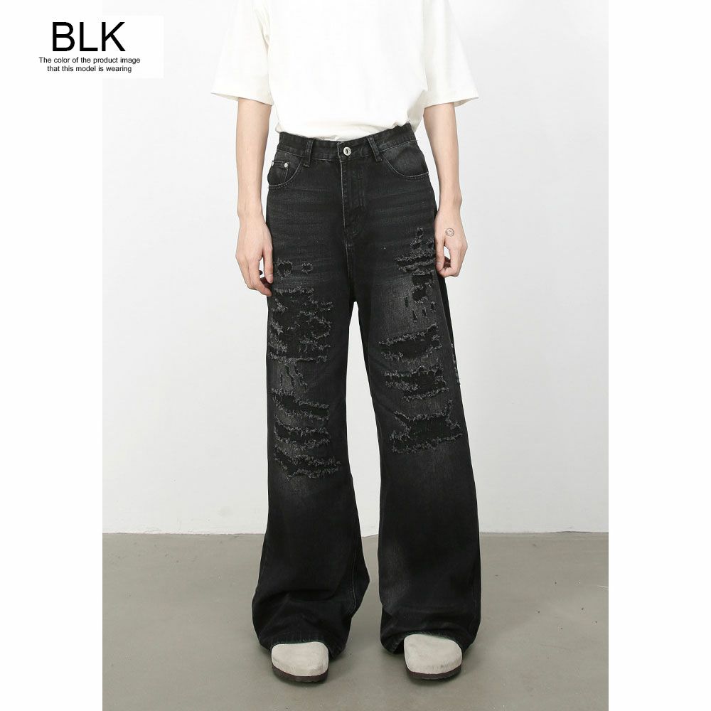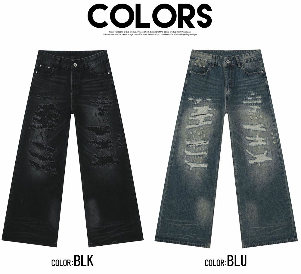 Lazy Tokyo【レイジートウキョウ】ダメージリペアワイドヴィンテージワイドデニムパンツ/全2色