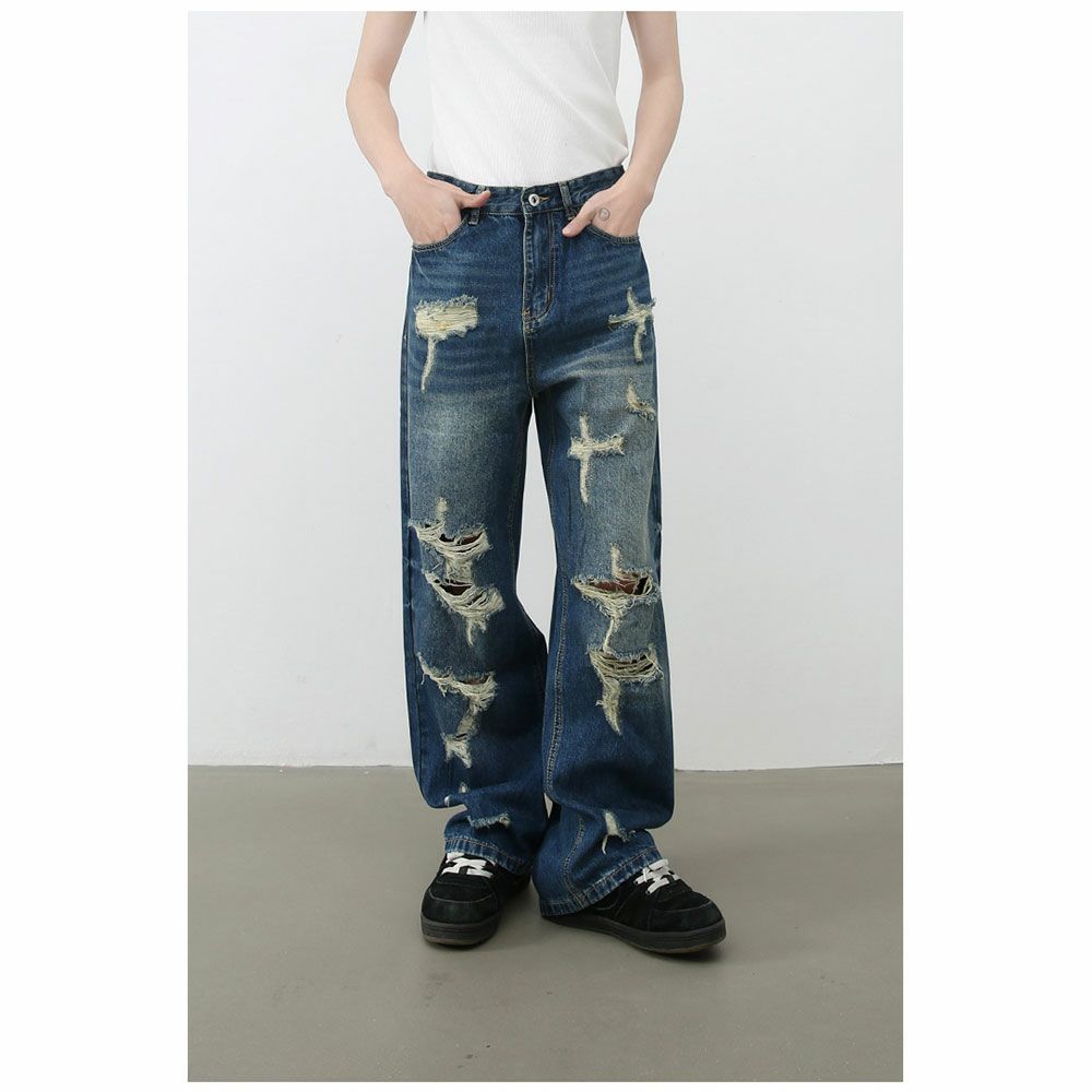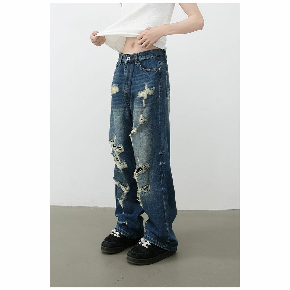 Lazy Tokyo【レイジートウキョウ】デストロイブルーデニムパンツ/全1色