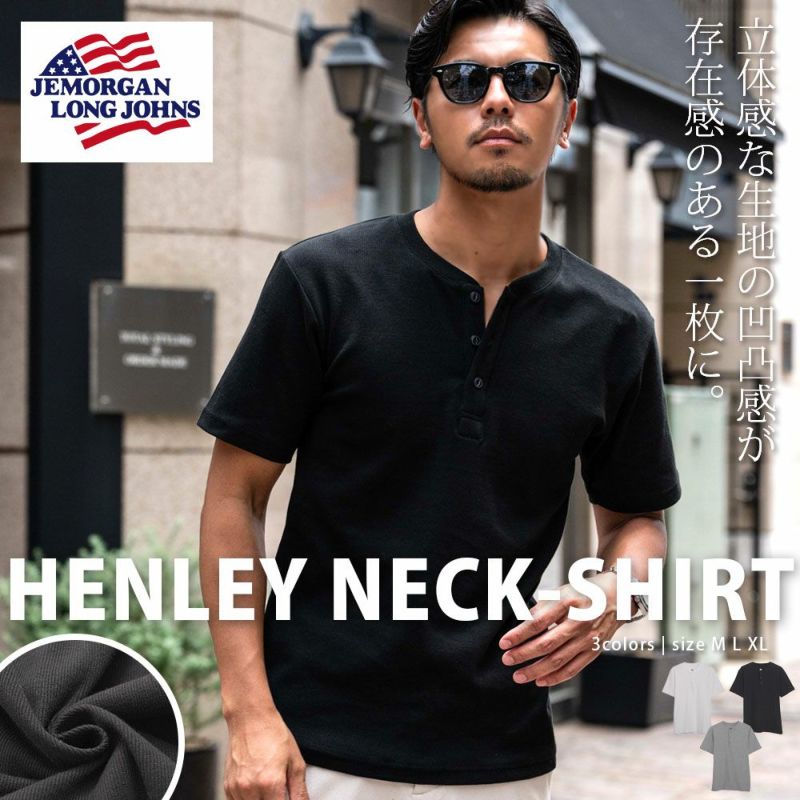 5. JEMORGAN LONG JOHNS【ジェーイーモーガンロングジョーンズ】250g/㎡テレコヘンリーネック半袖T/全3色【メール便対応】