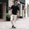 3つボタンのヘンリーネックはクルーネックに比べてラフすぎず、きちんと感があるのが特徴。