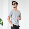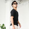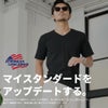 高密度な250g/㎡テレコ素材を使用したVネック半袖Tシャツ。